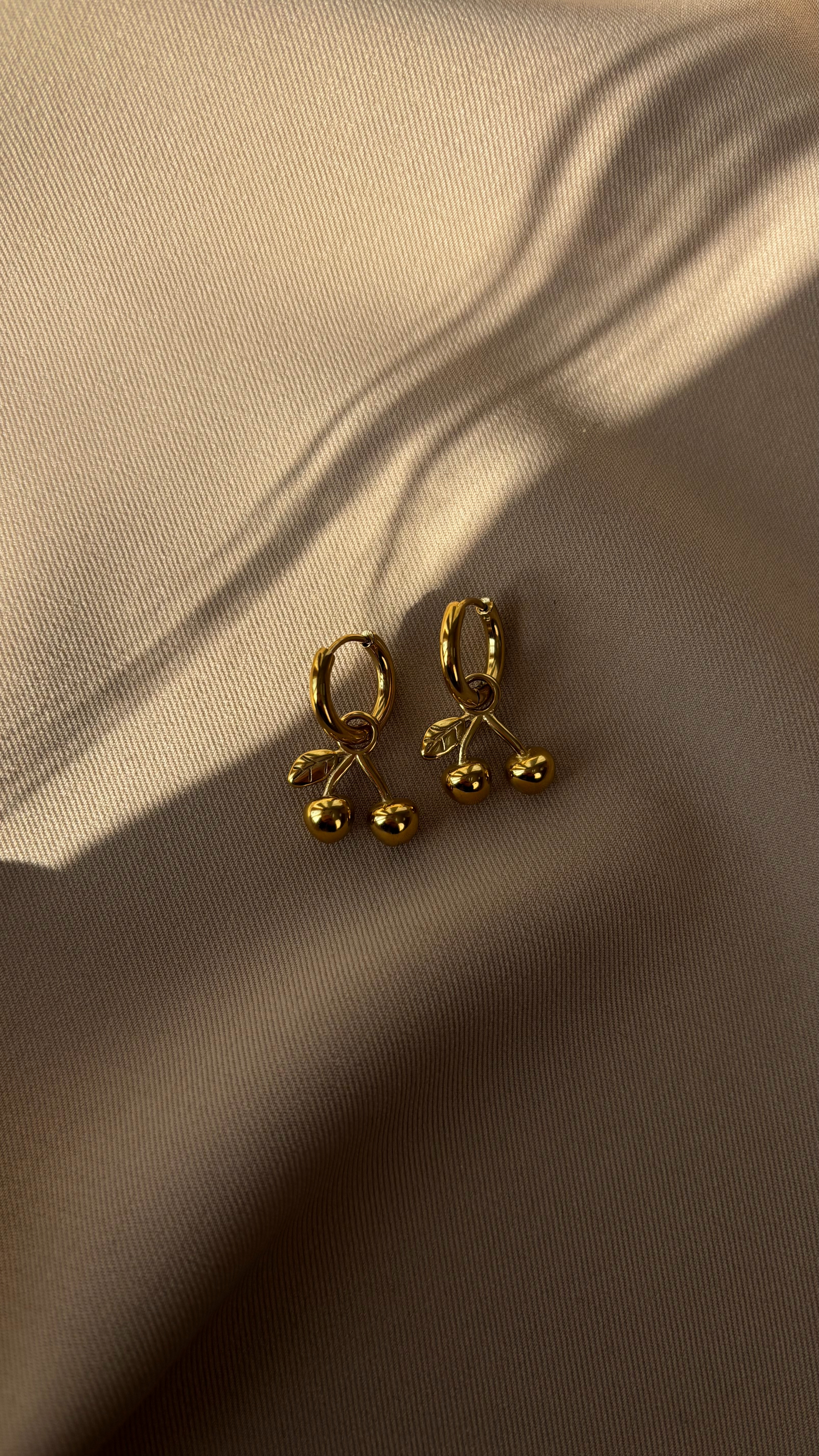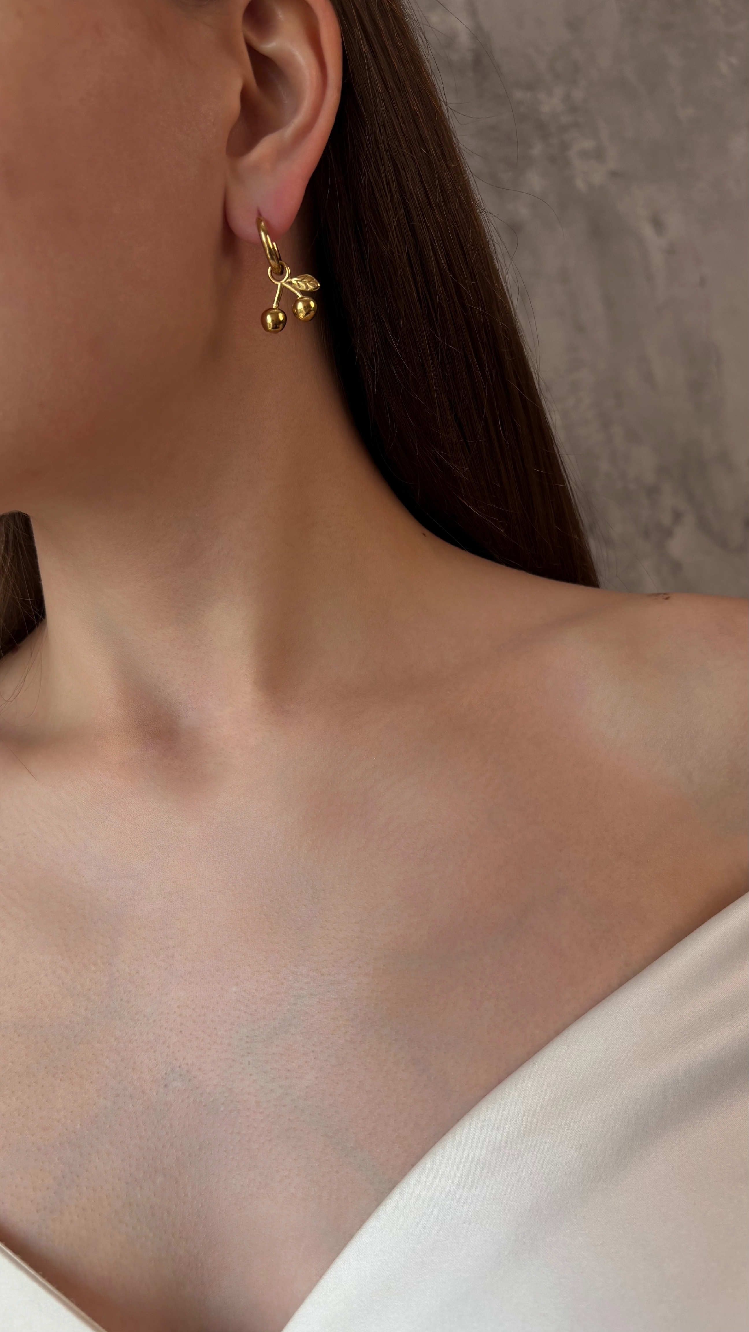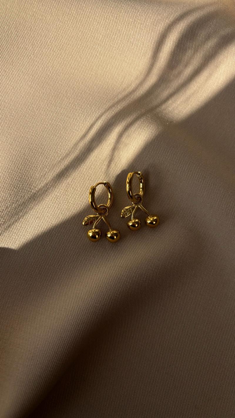 Сережки вишні. Матеріал нержавіюча ювелірна сталь з позолотою (у золотому кольорі).