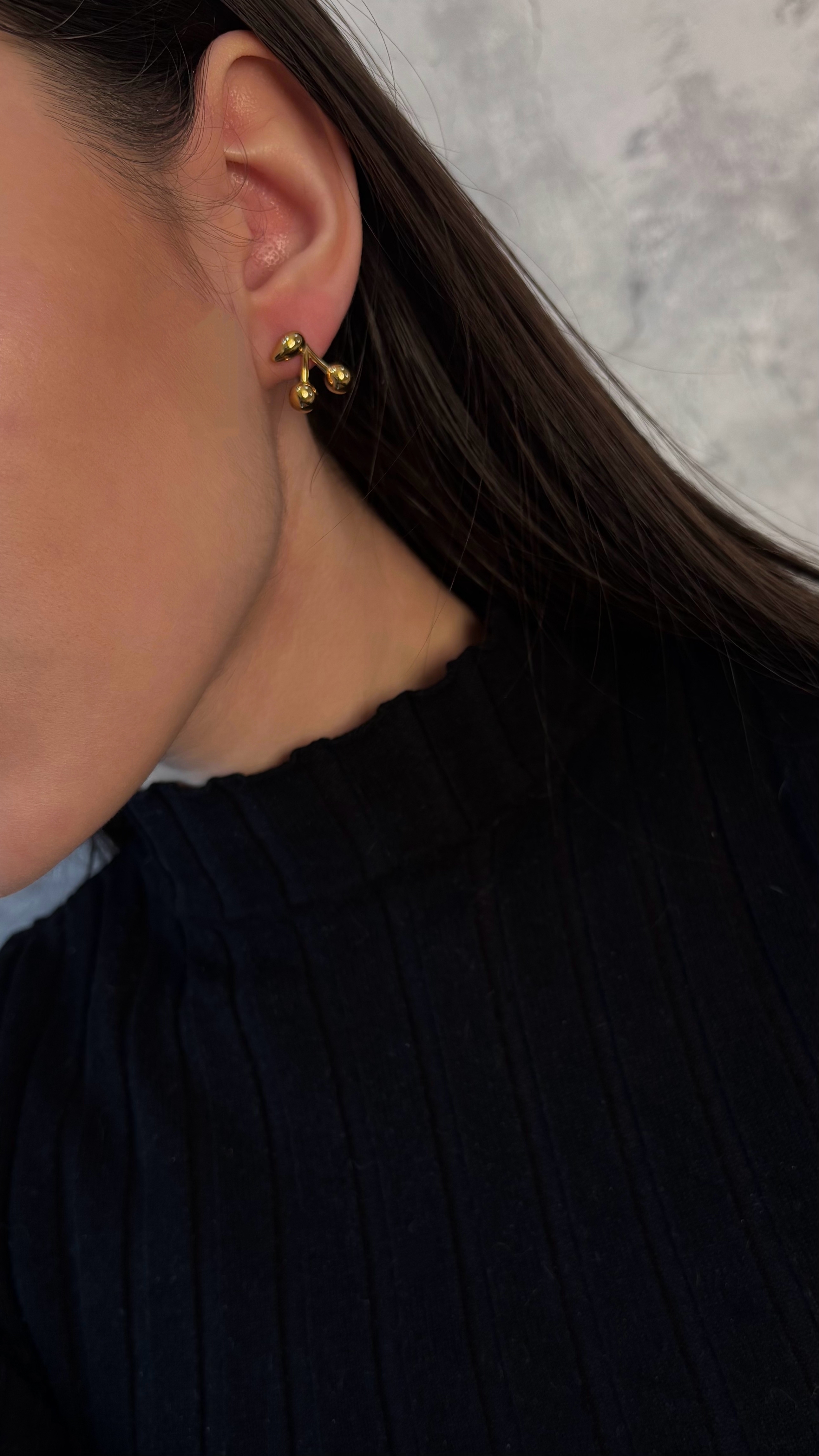 Сережки вишні. Матеріал нержавіюча ювелірна сталь з позолотою (у золотому кольорі).