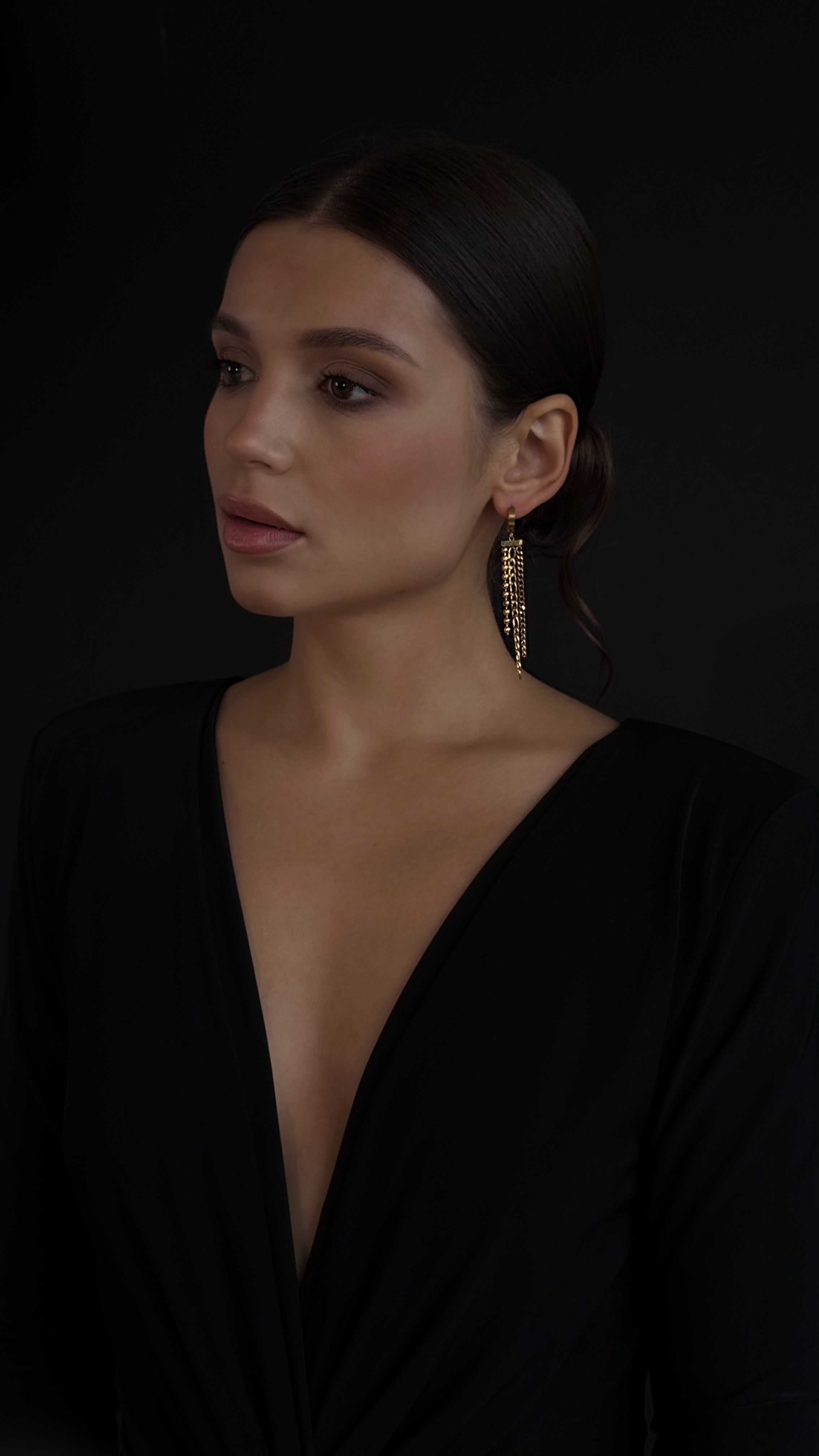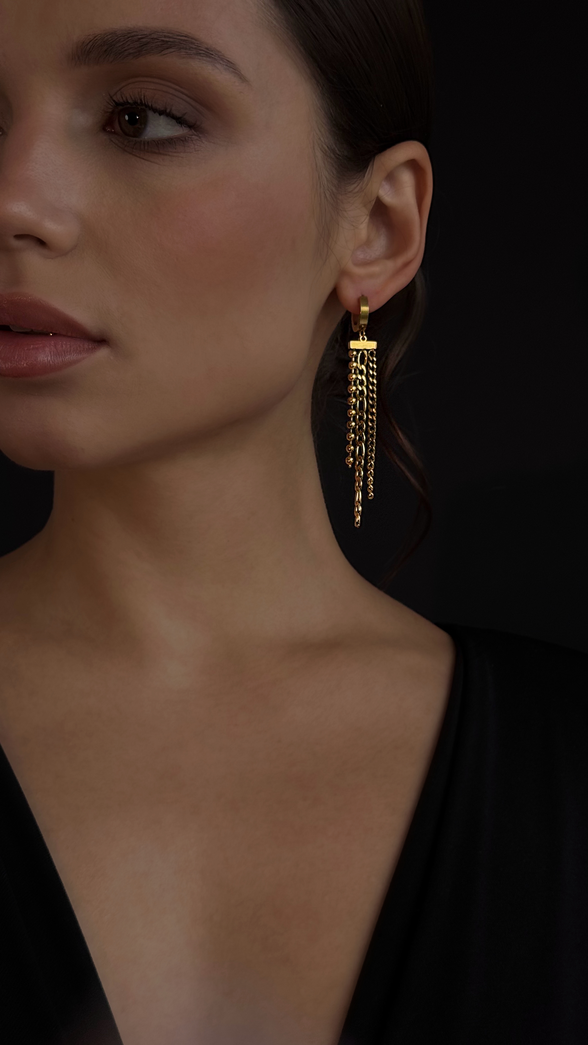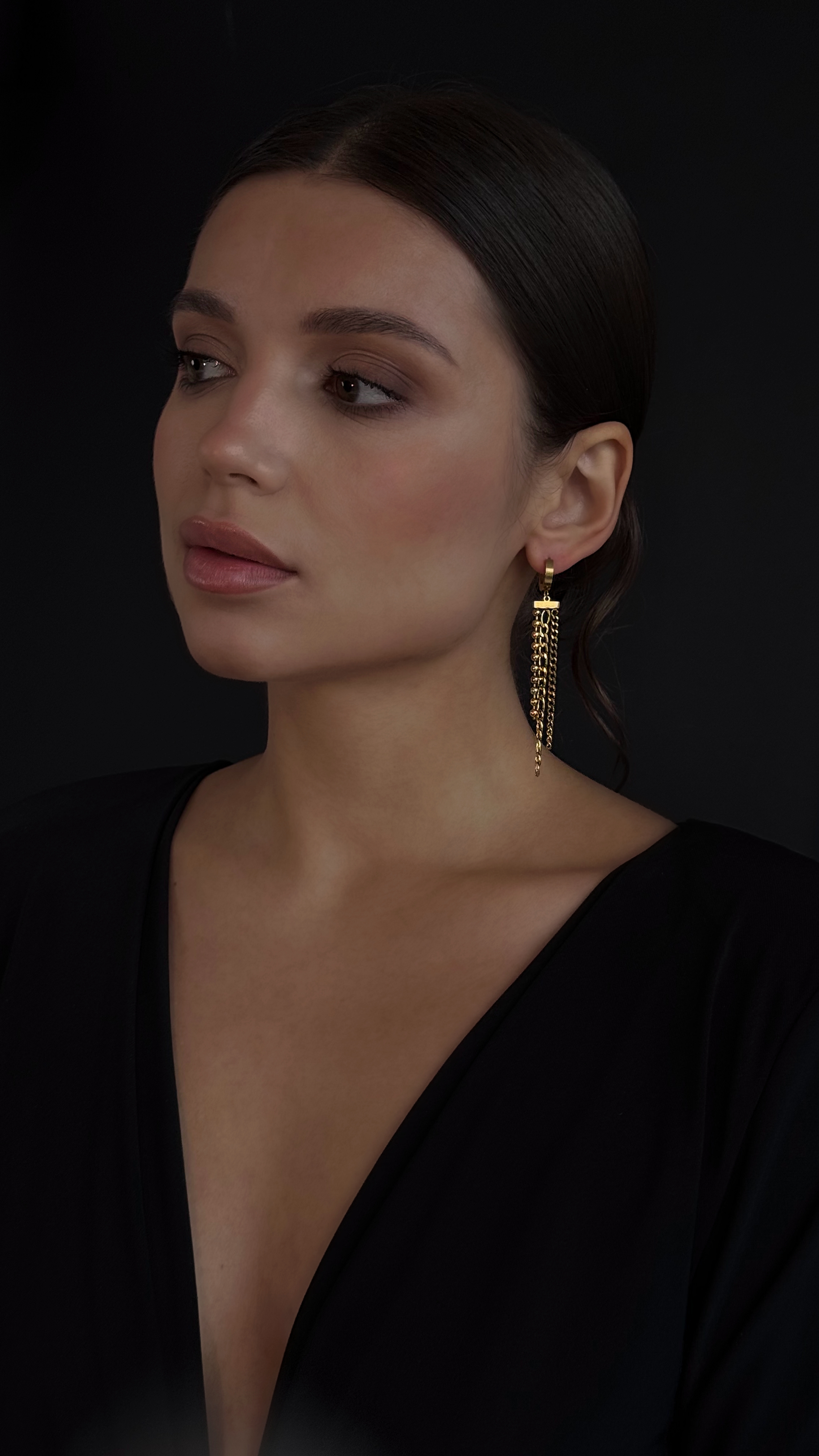 Подовжені сережки зі звисаючими ланцюжками. Матеріал нержавіюча ювелірна сталь з позолотою (у золотому кольорі).