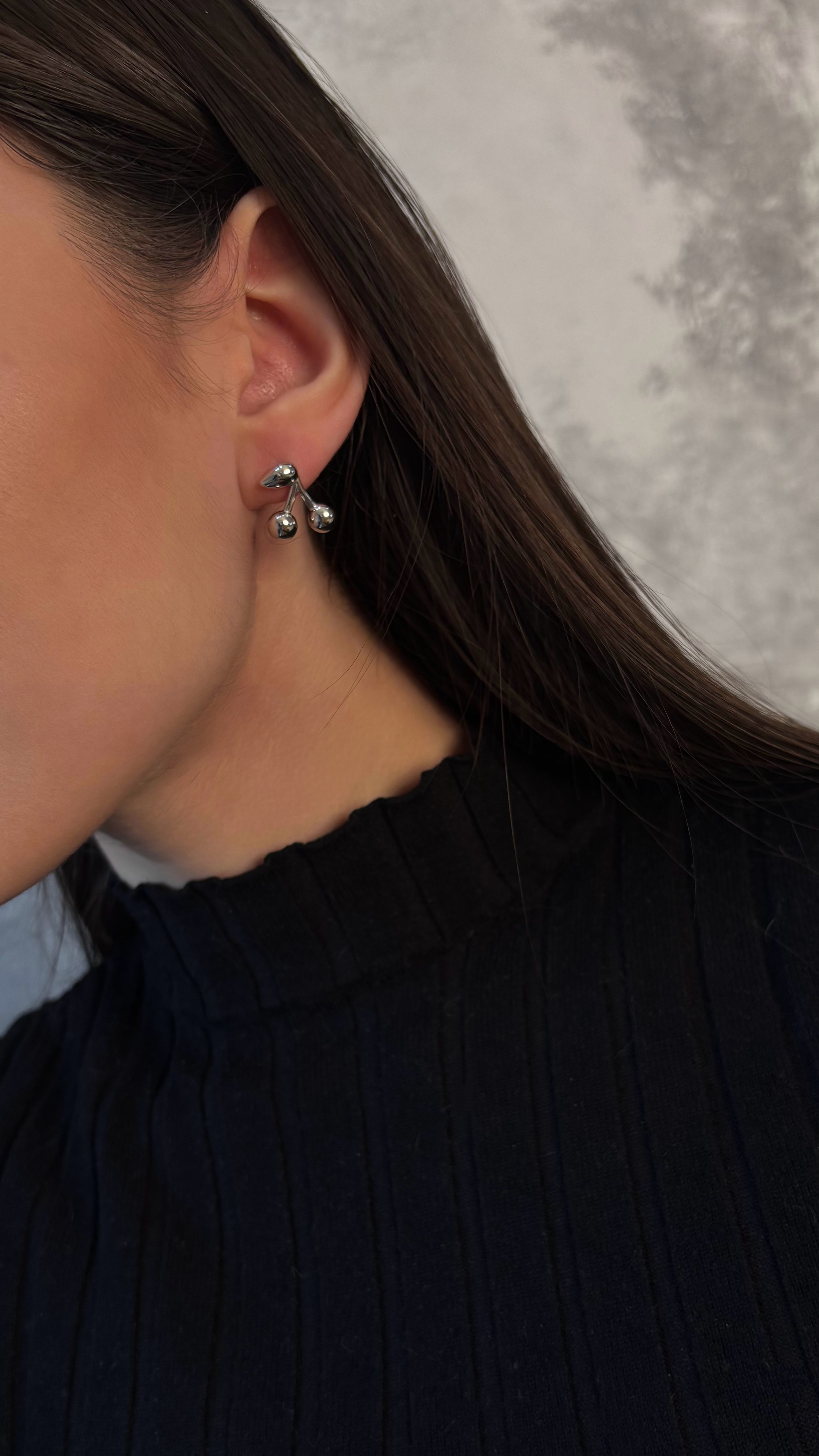 Сережки вишні. Матеріал нержавіюча ювелірна сталь з позолотою (у срібному кольорі).
