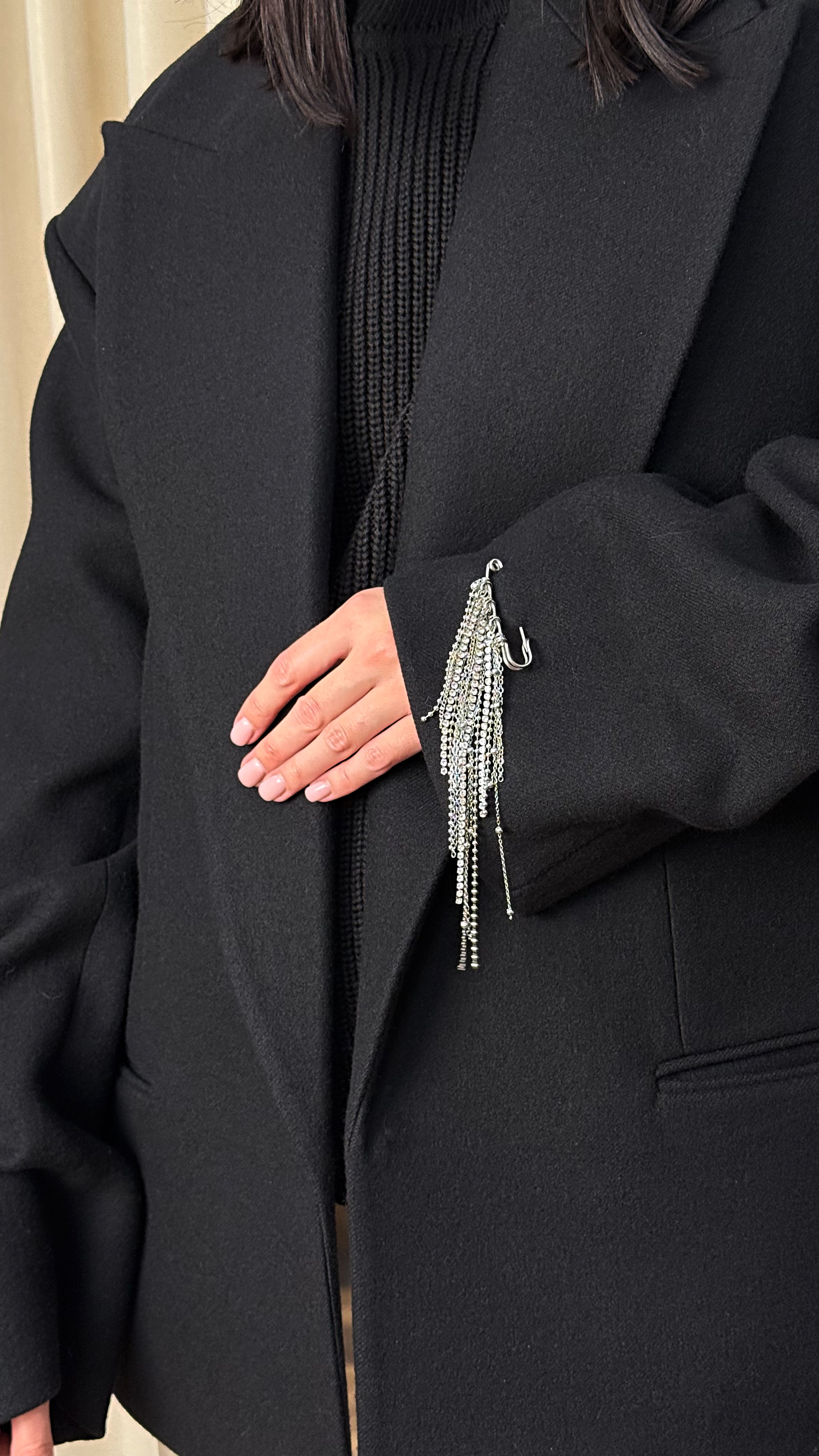 Стильна булавка з ланцюжками та фіанітами. Матеріал ювелірна сталь (у срібному кольорі).