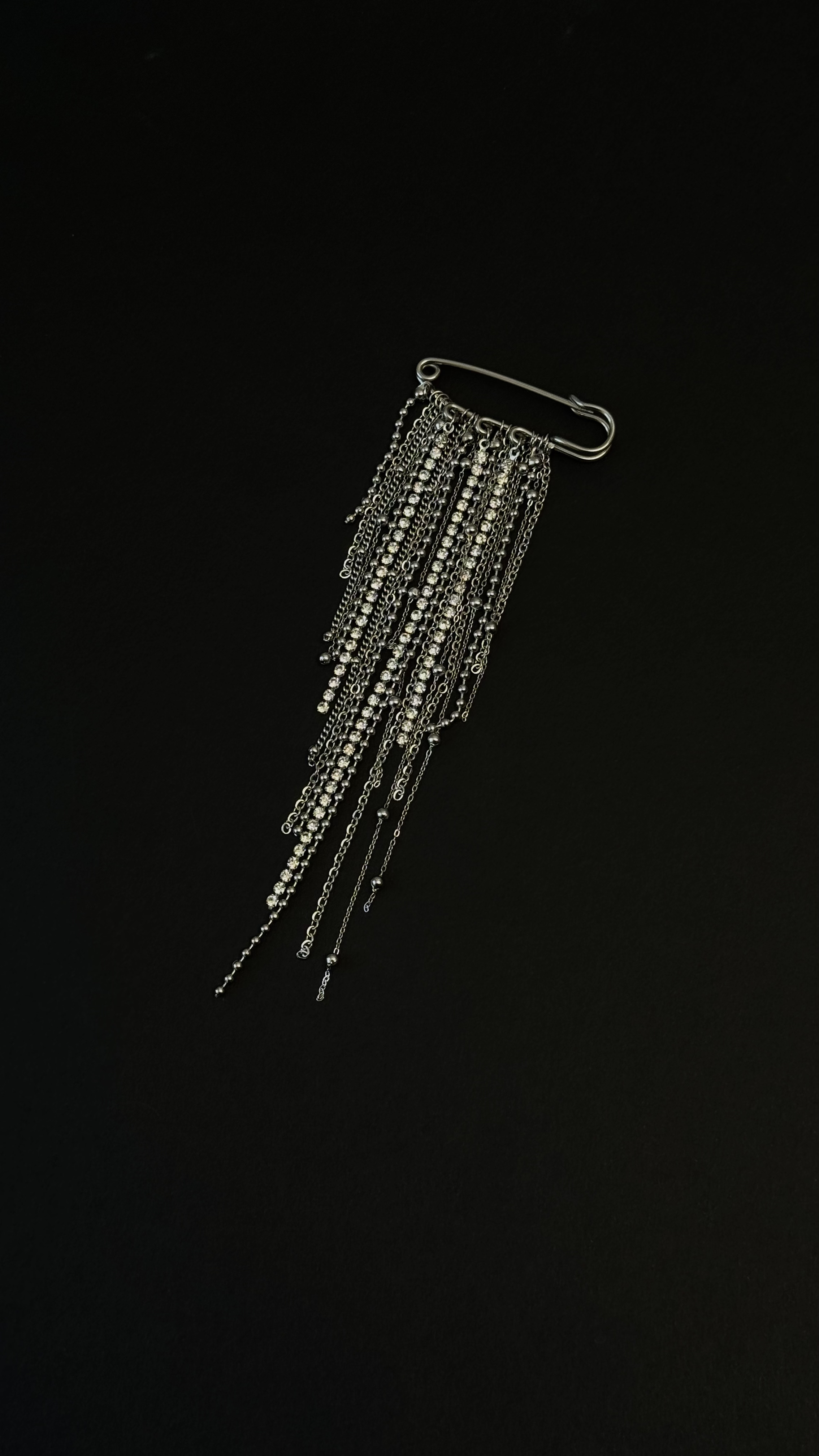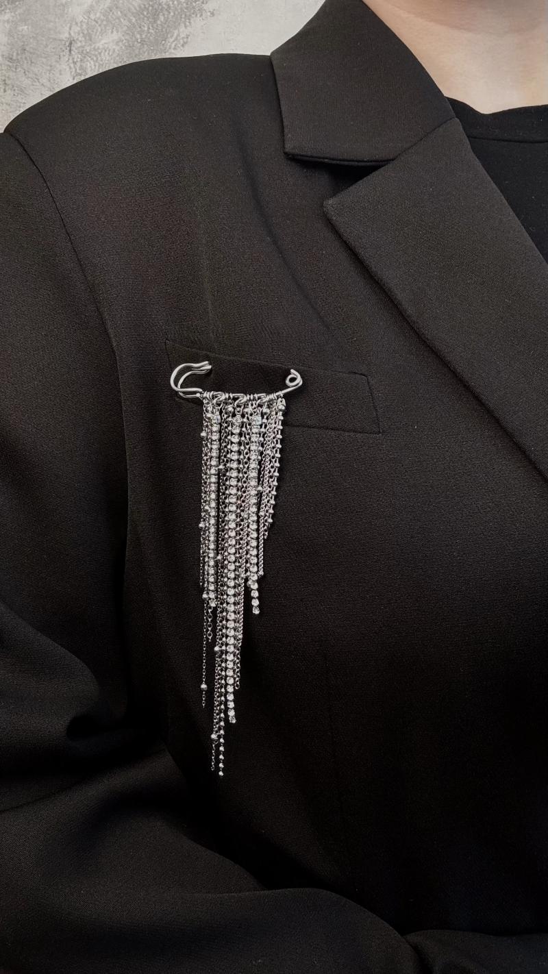 Стильна булавка з ланцюжками та фіанітами. Матеріал ювелірна сталь (у срібному кольорі).