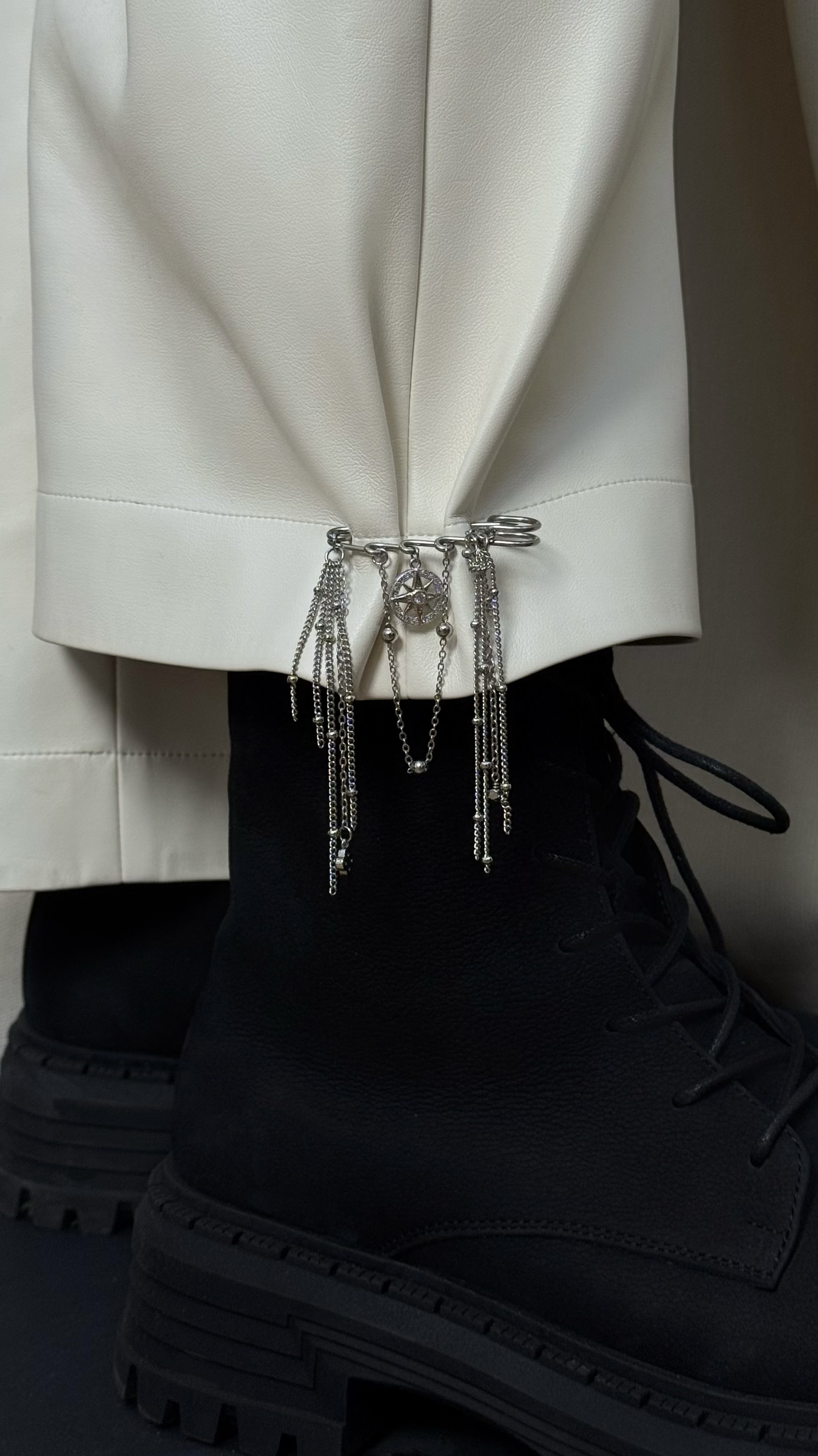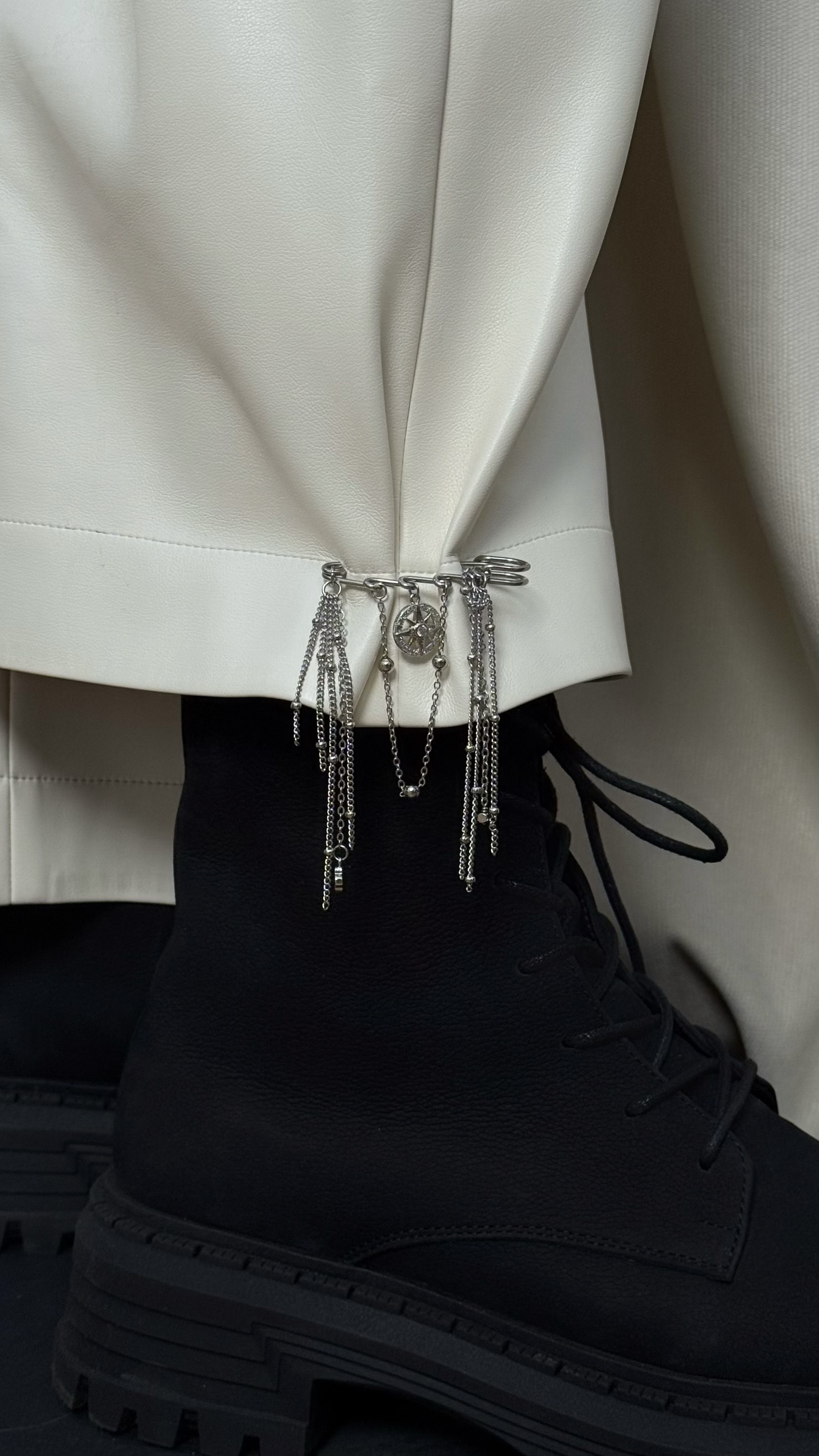 Стильна булавка з ланцюжками і компасом. Матеріал ювелірна сталь (у срібному кольорі).