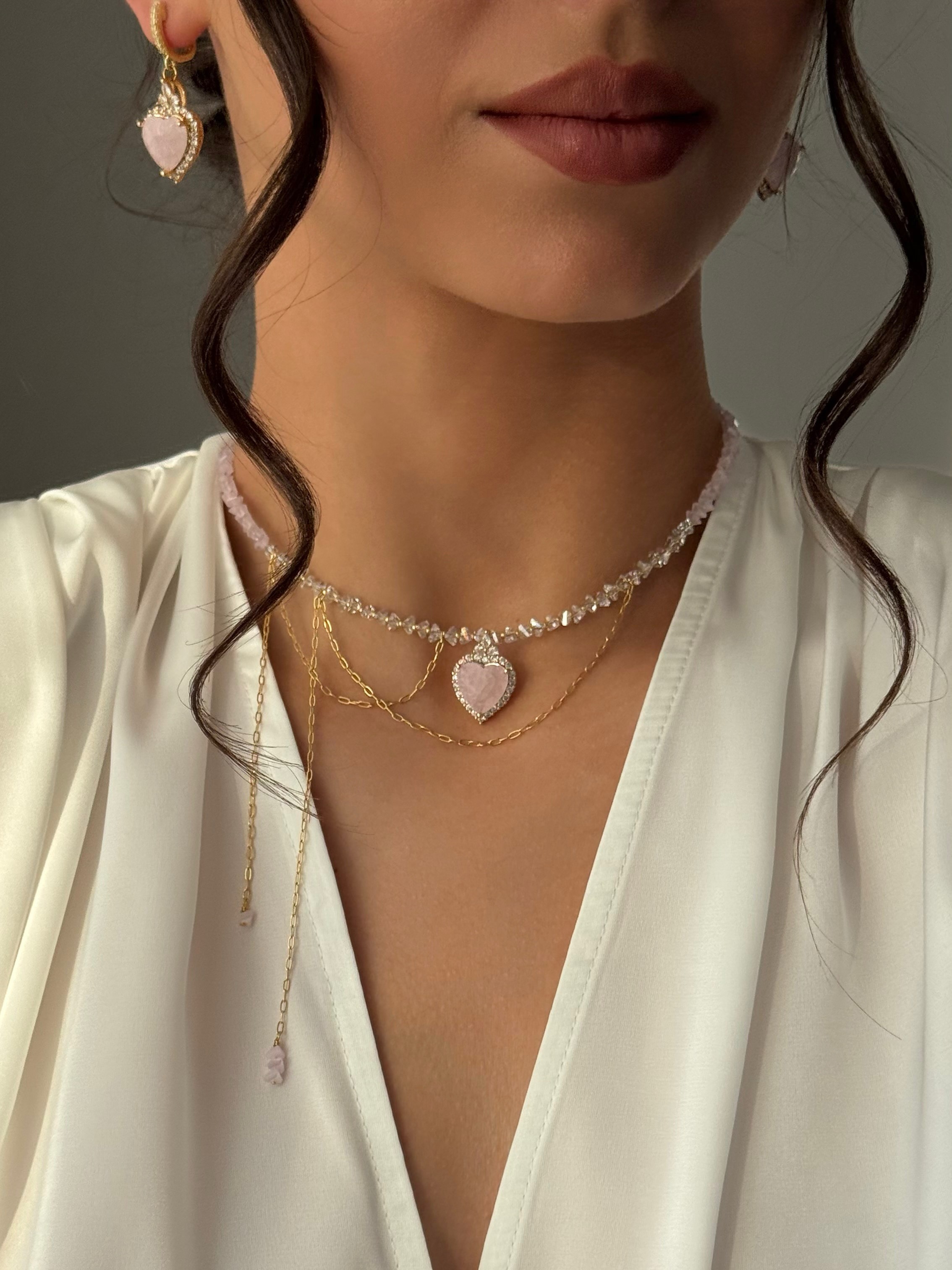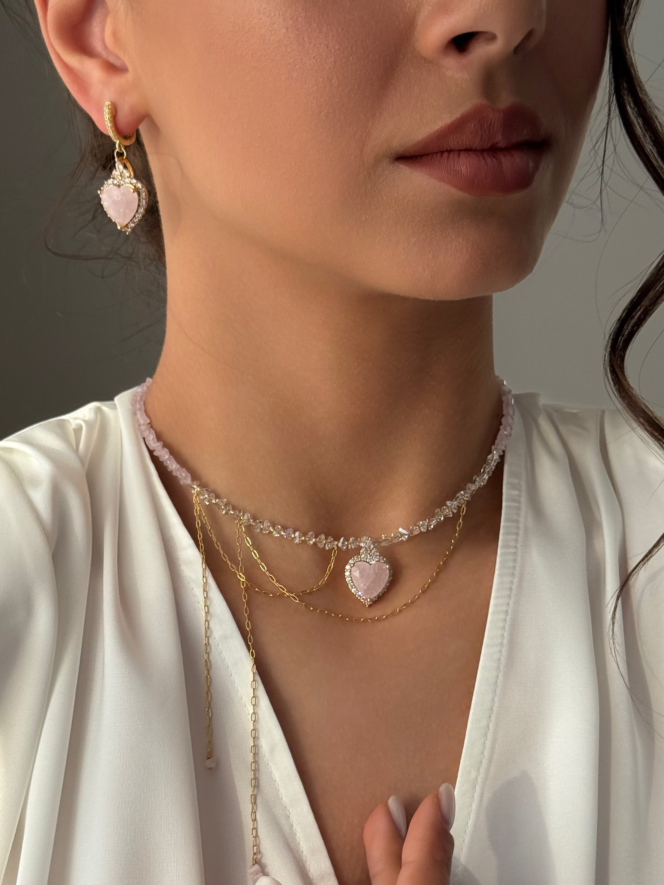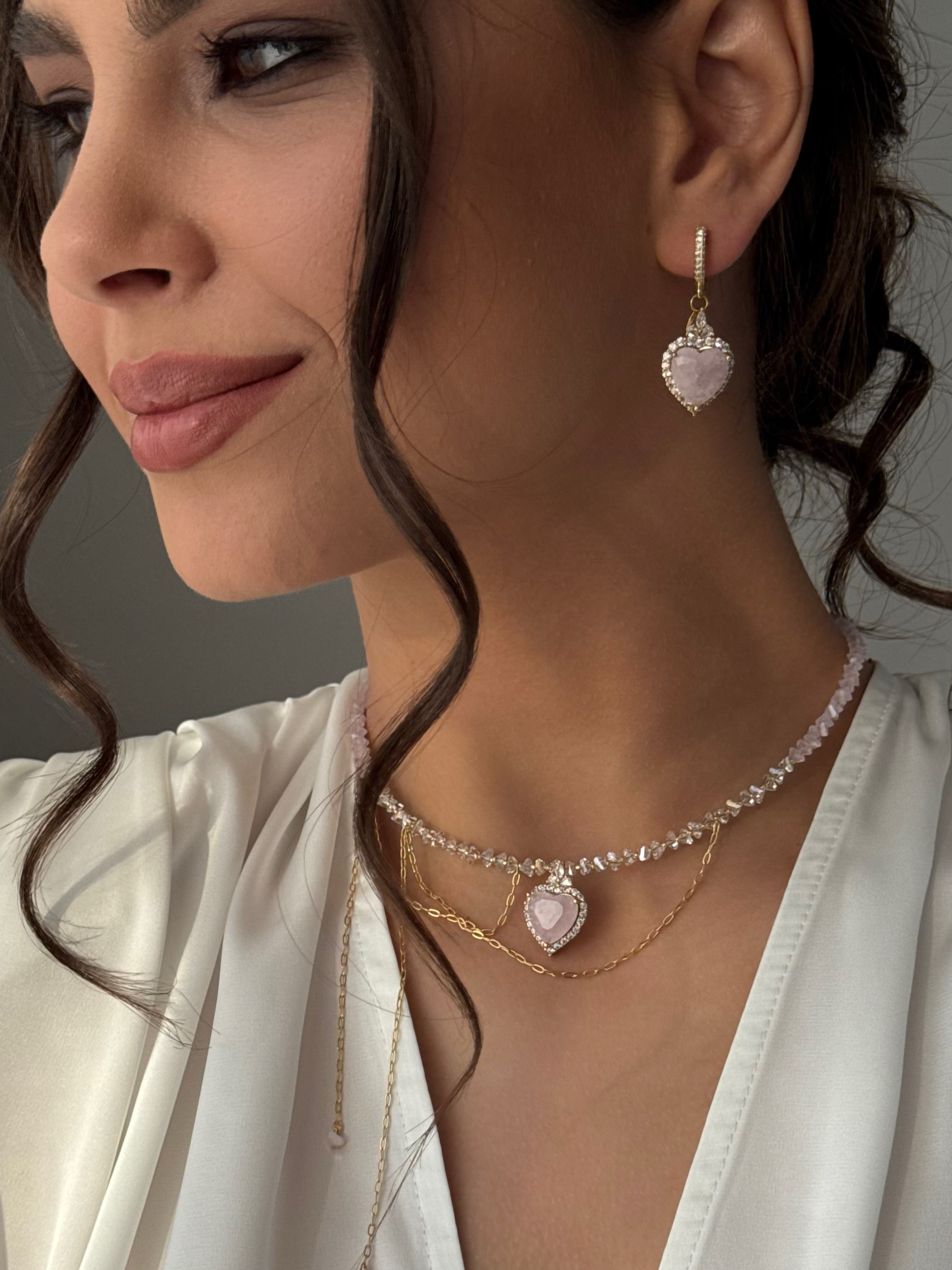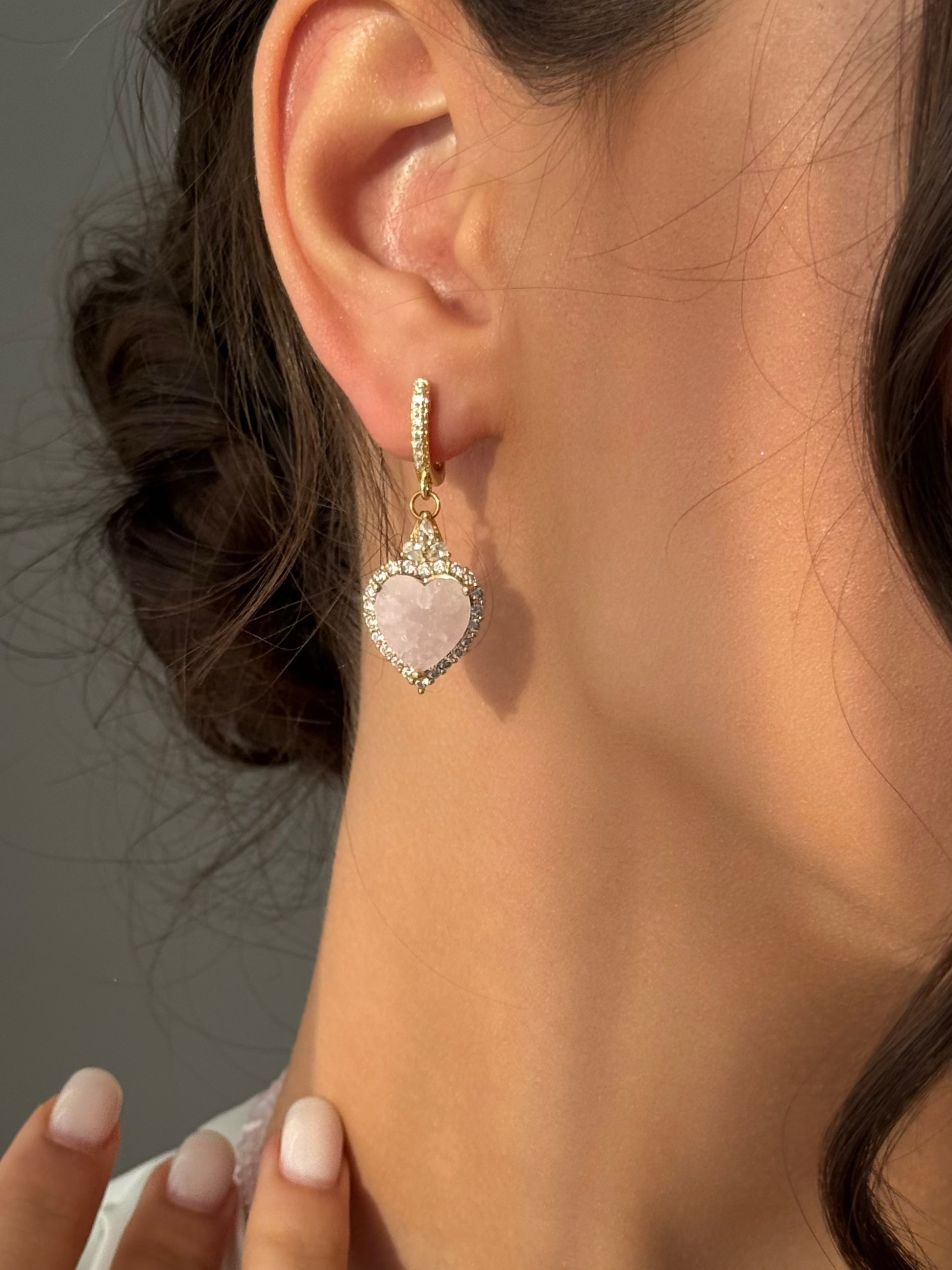 - Сережки у формі серця з блискучим фіанітом