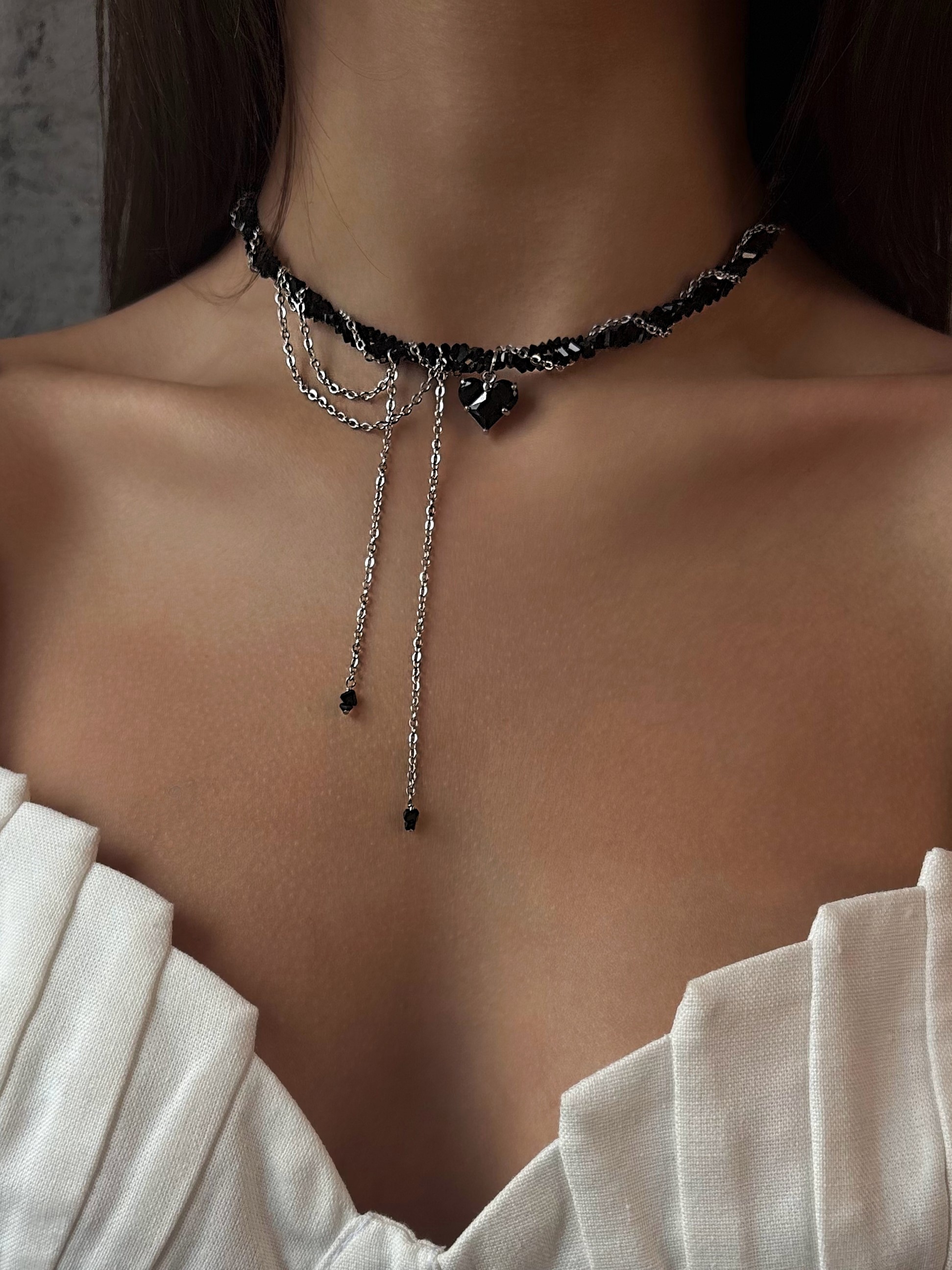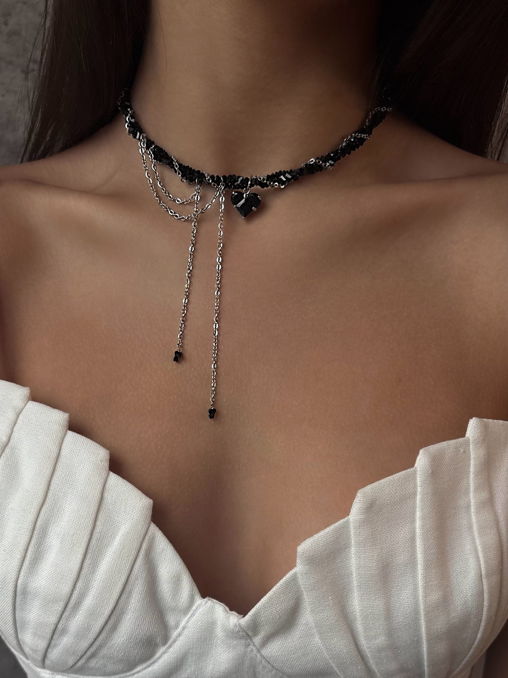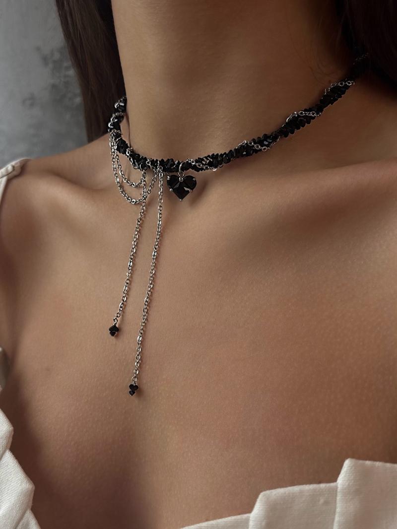 - Кольє з чорного кришталю з ланцюжками та кулоном