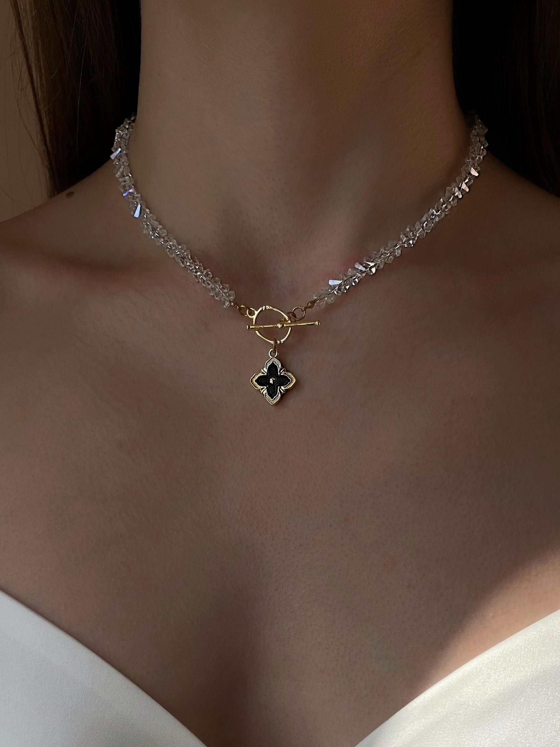 - Кольє з відбірного прозорого кришталю з двостороннім кулоном