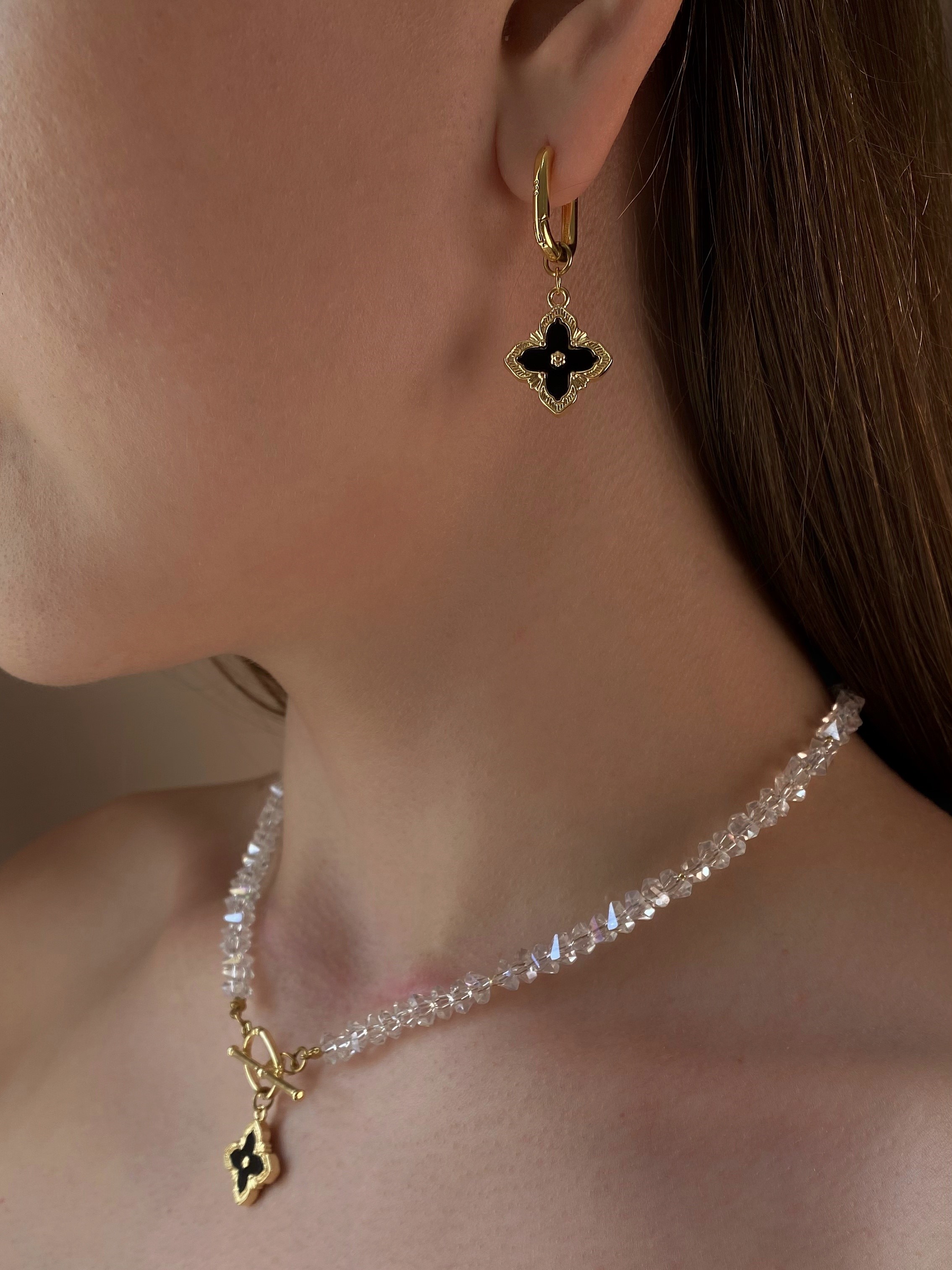 Прикраси з ювелірної сталі можна мочити та носити не знімаючи. Прикраси з латуні рекомендуємо знімати перед душем, морем або басейном, щоб вони радували Вас якомога довше.