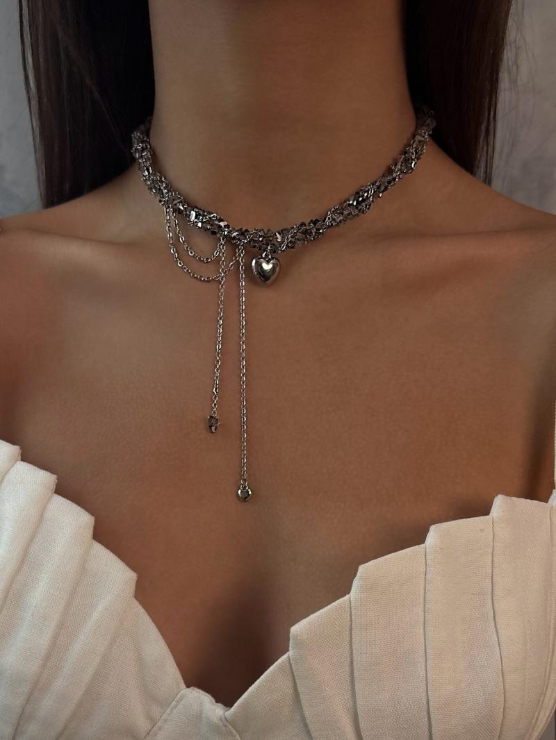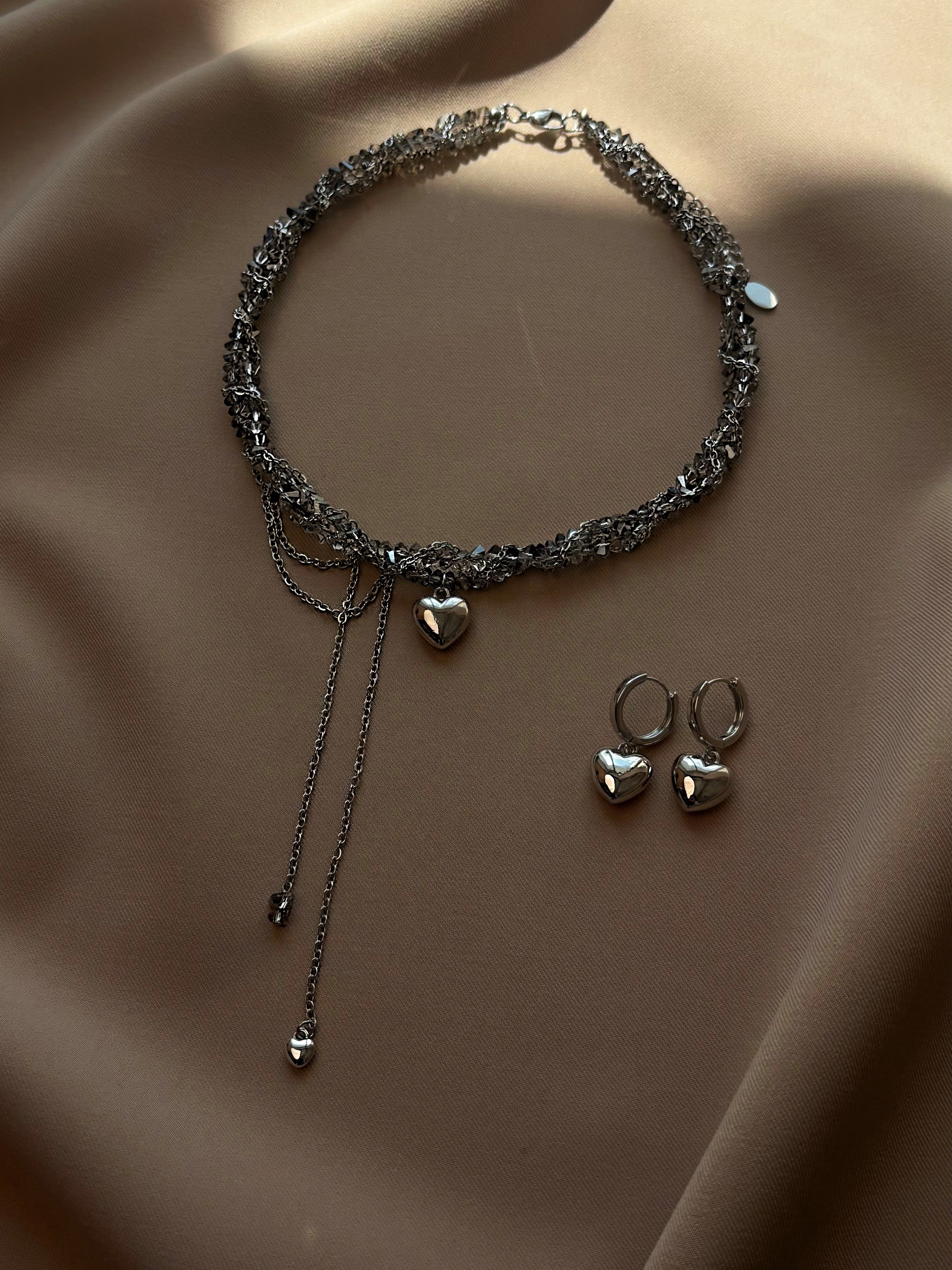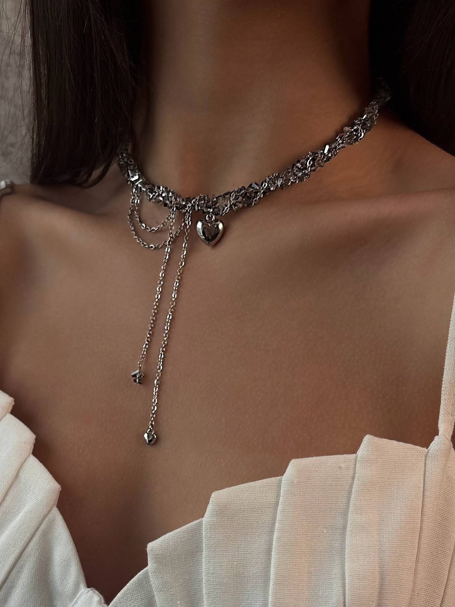 Кольє з прозорого кришталю та ланцюжка з кулоном серце