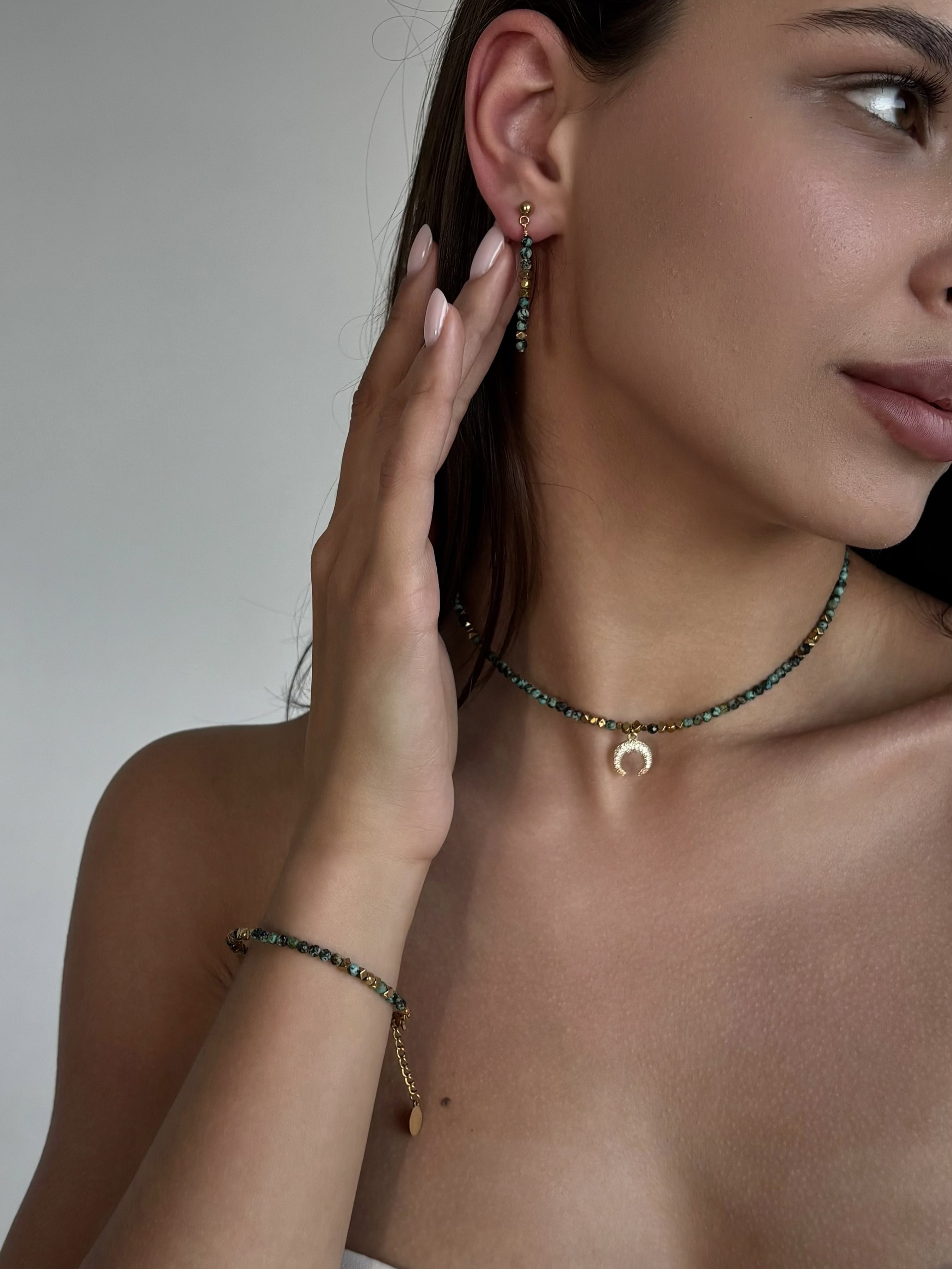 Сережки гвіздочки з натуральної бірюзи та гематиту. Матеріал основи нержавіюча ювелірна сталь з позолотою (у золотому кольорі).