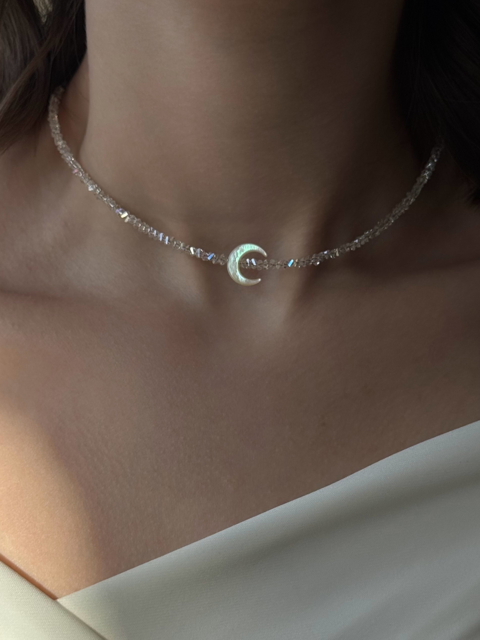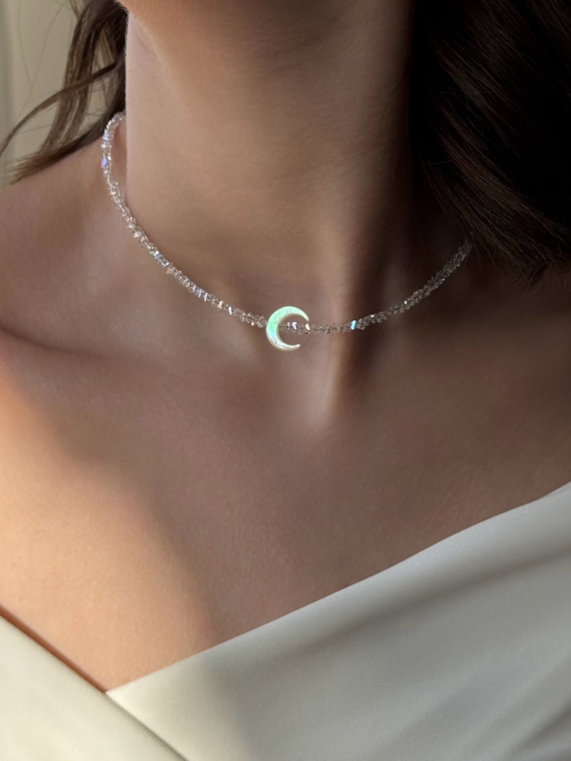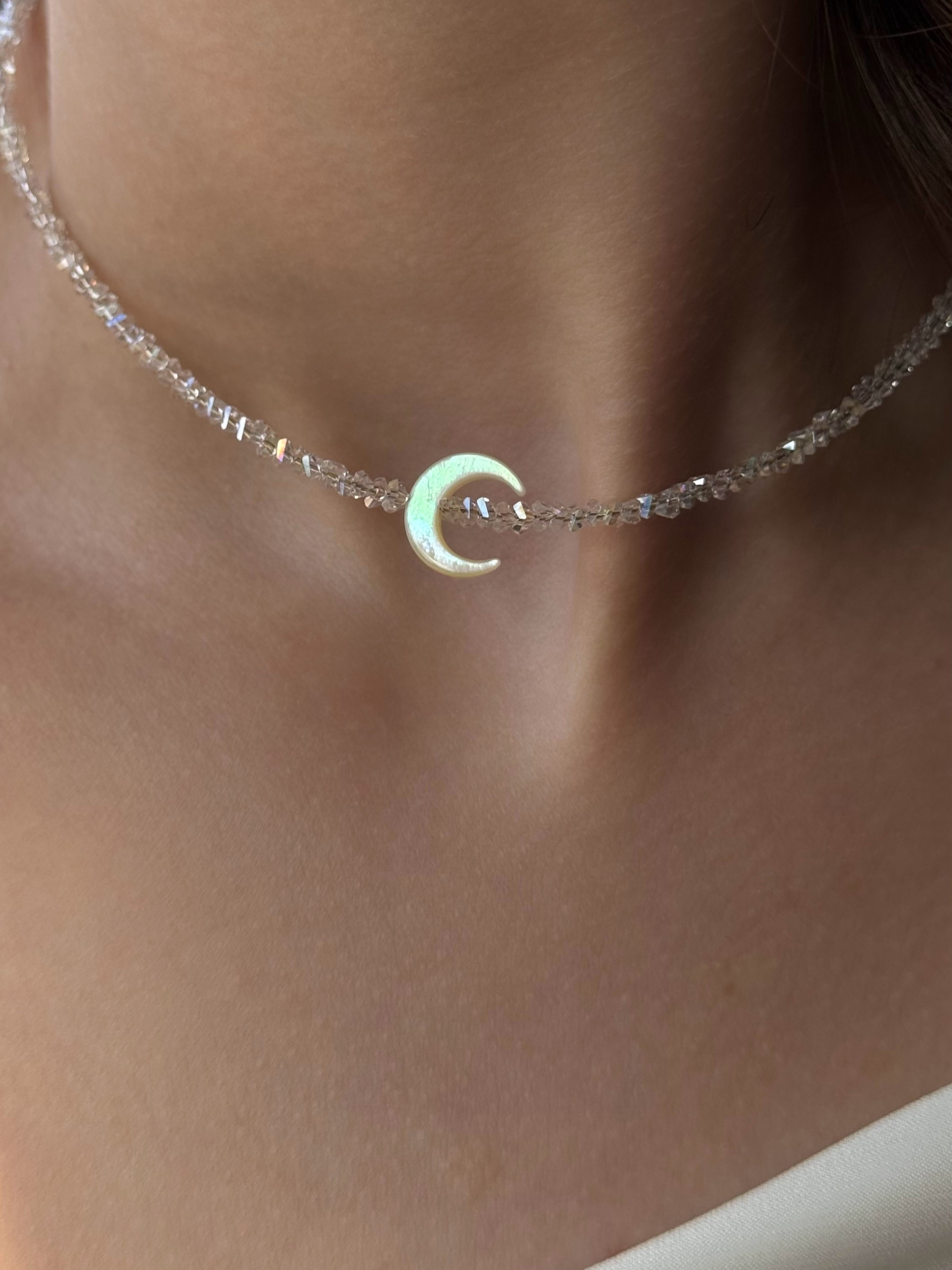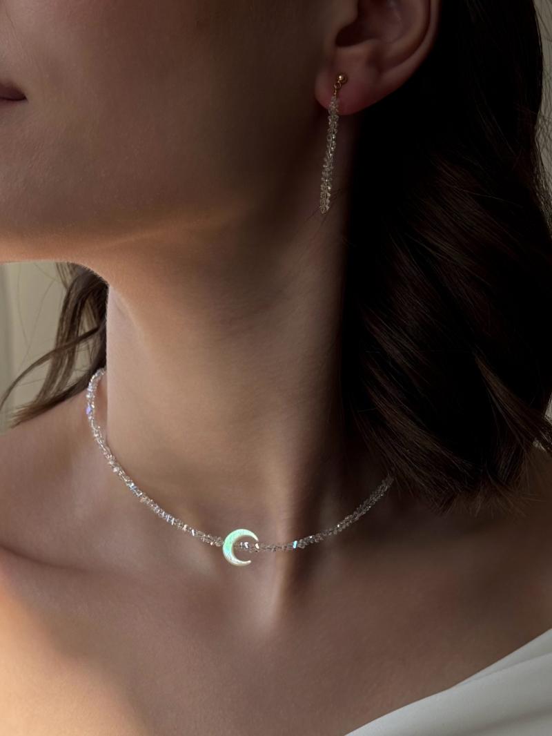 - Сяючий чокер з прозорого кришталю із лунницею