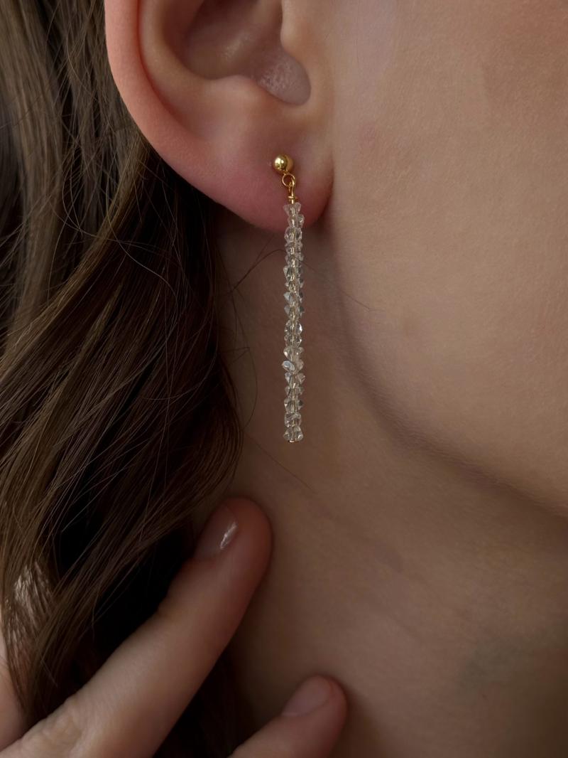 Чокер з прозорого кришталю з додаванням перламутрової лунниці. Матеріал фурнітури ювелірна нержавіюча сталь (у золотому кольорі). Стандартна довжина 36 см та 6 см подовжувач. Замір шиї моделі впритул 29 см.