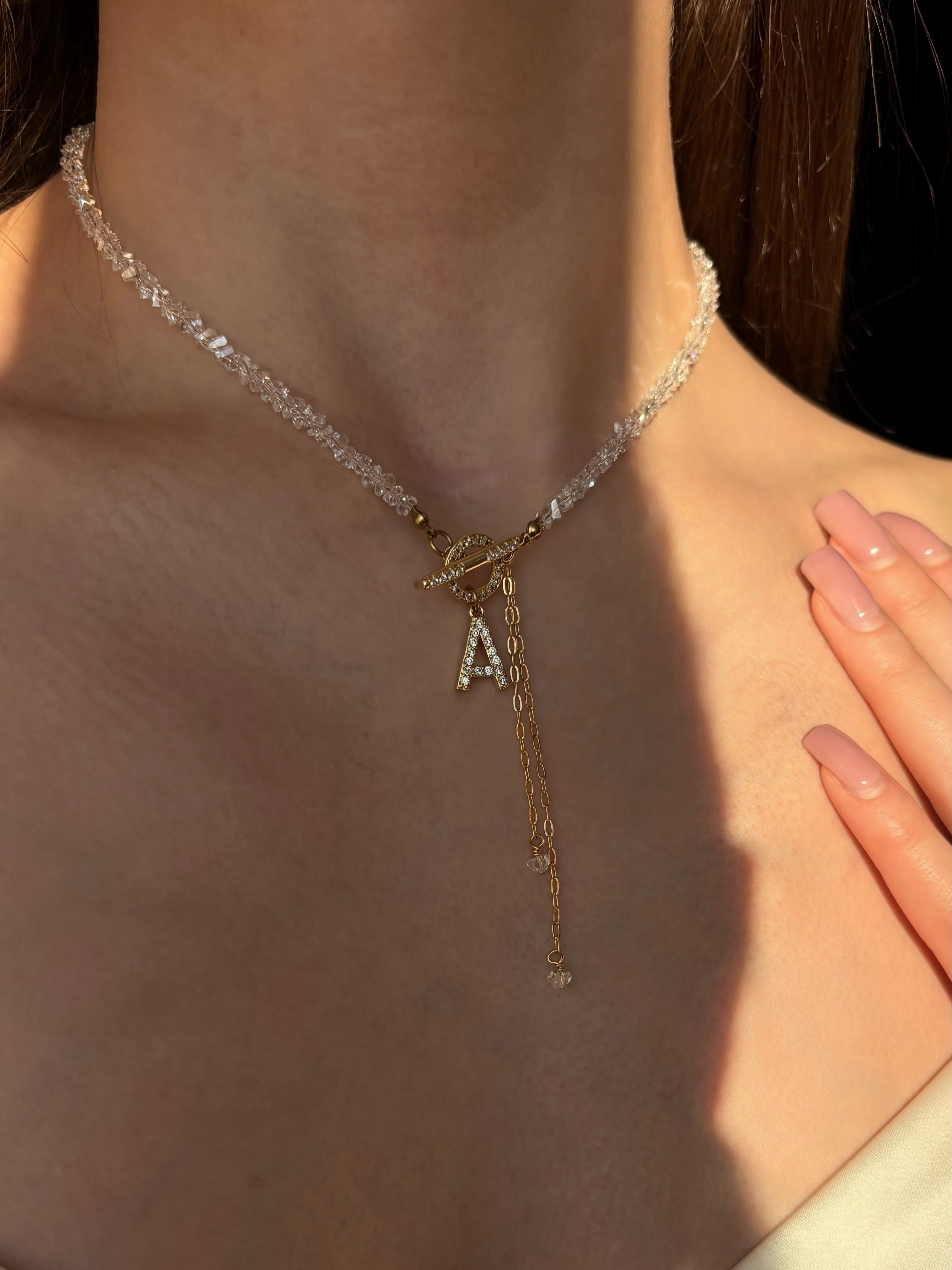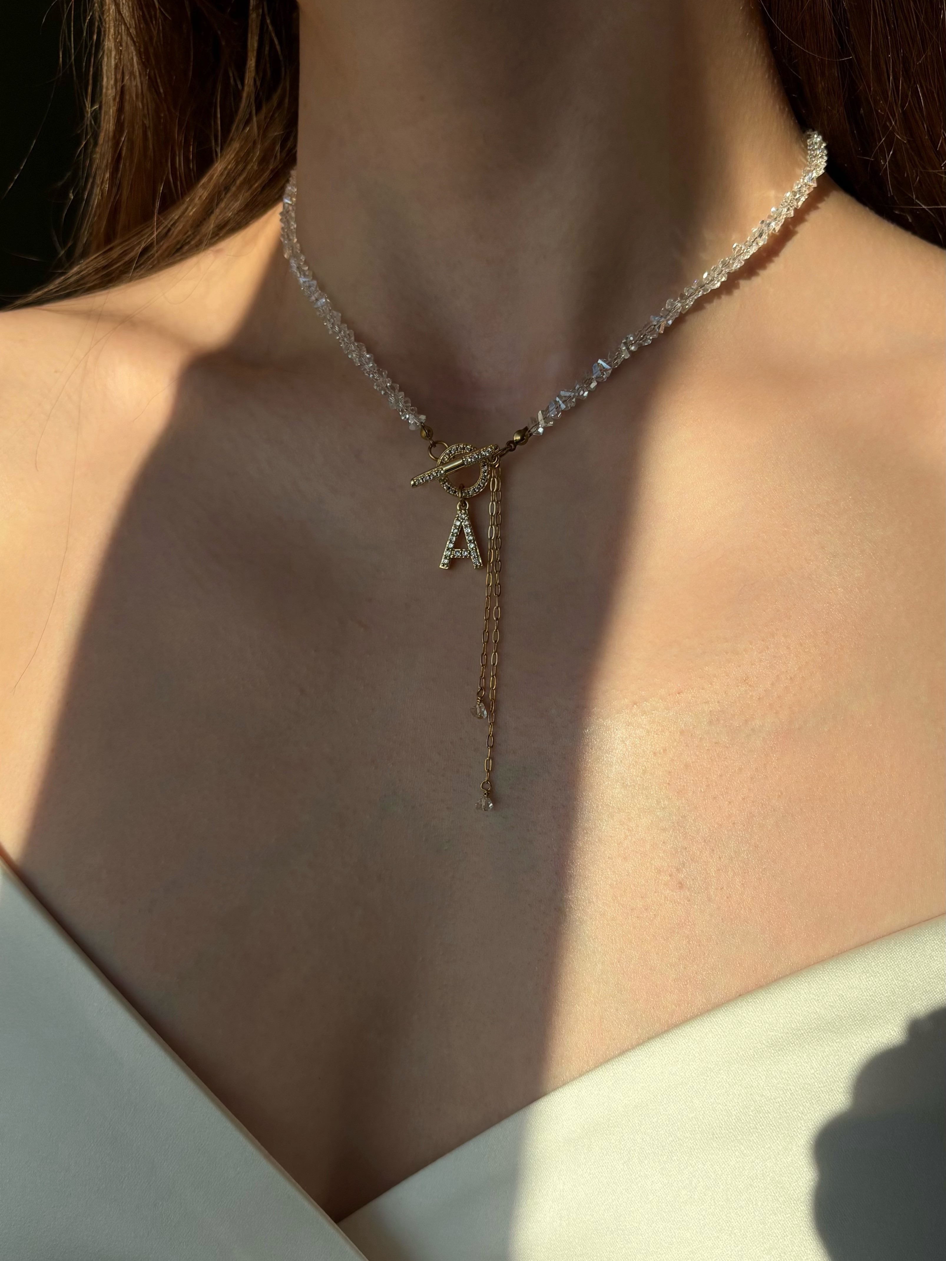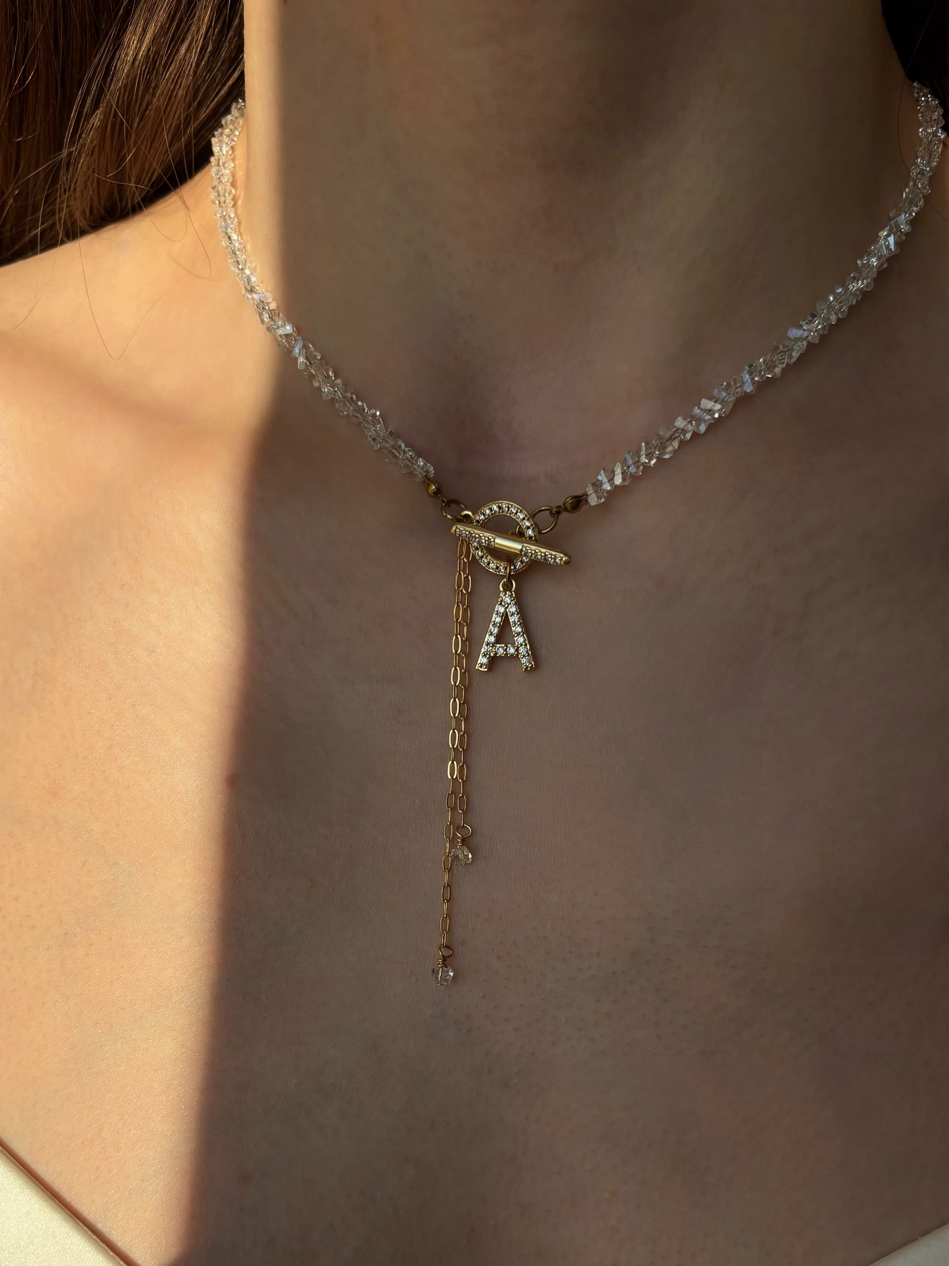 - Кольє з прозорого кришталю з літерою
