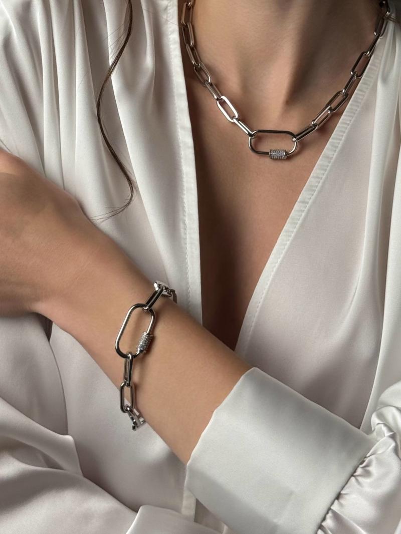 Браслет з універсального ланцюжка з акцентною застібкою. Матеріал латунь з покриттям родій (у срібному кольорі).