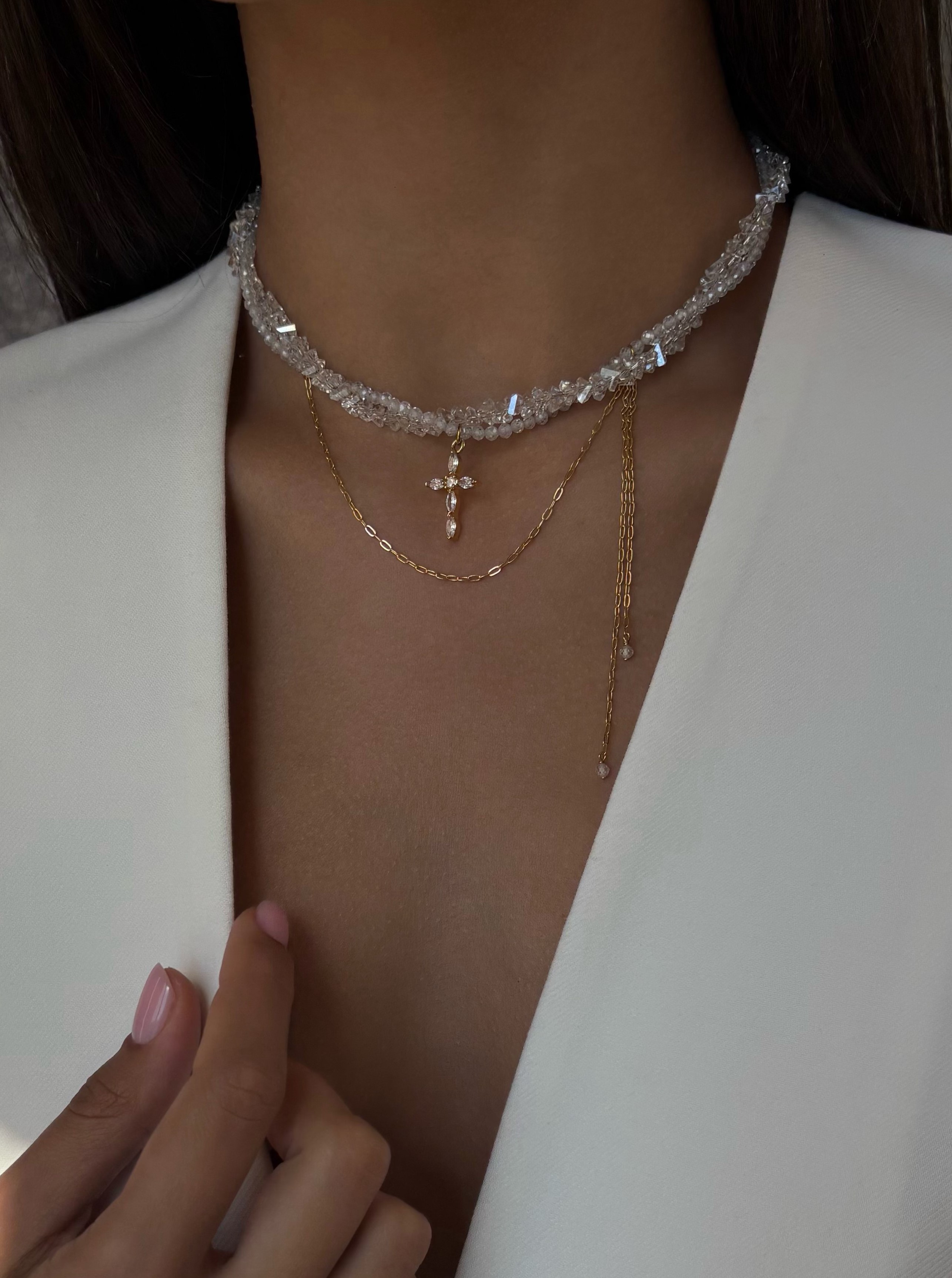 Кольє з прозорого кришталю та фіанітів