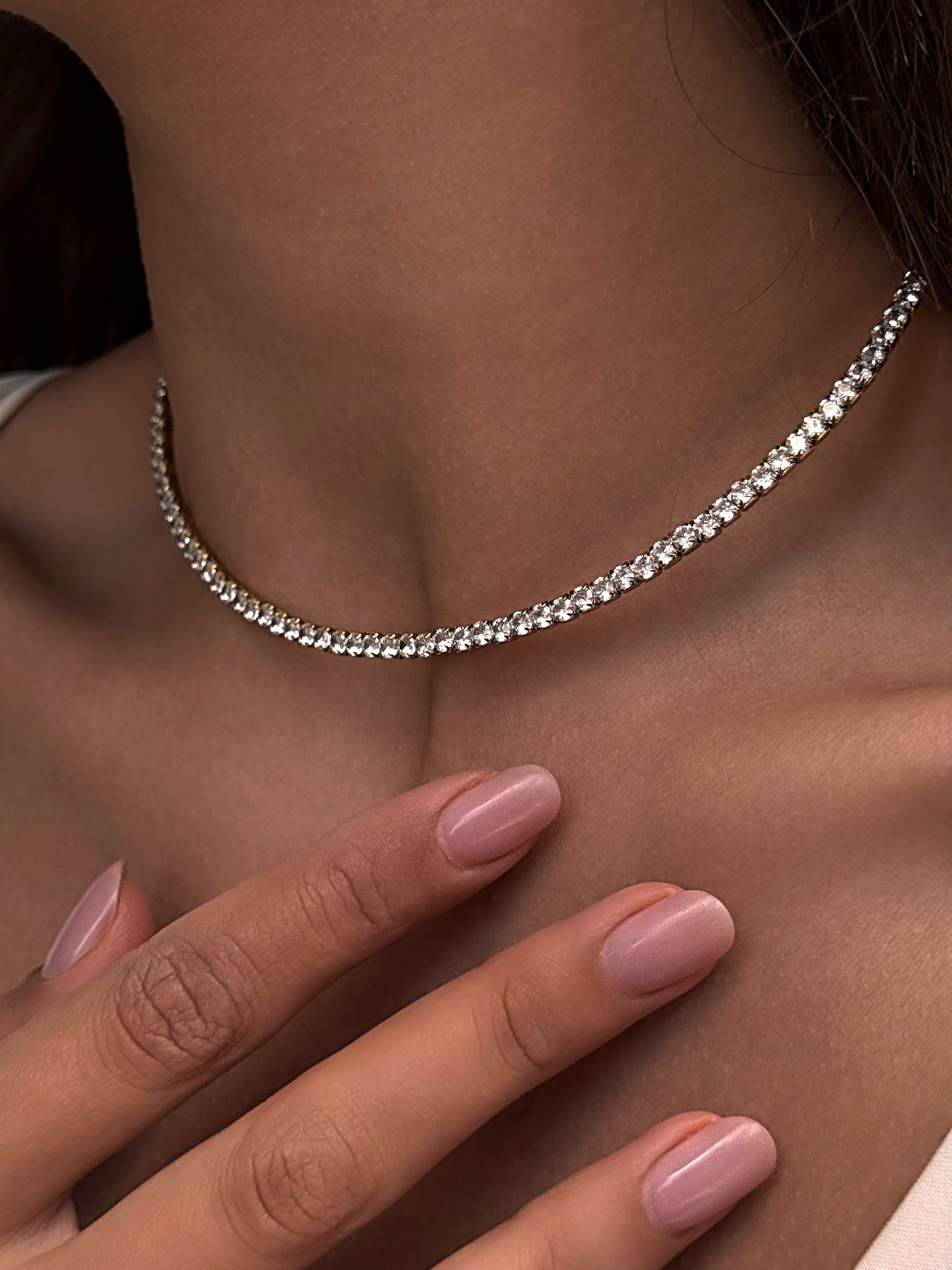 - Сяюча основа чокер з фіанітами