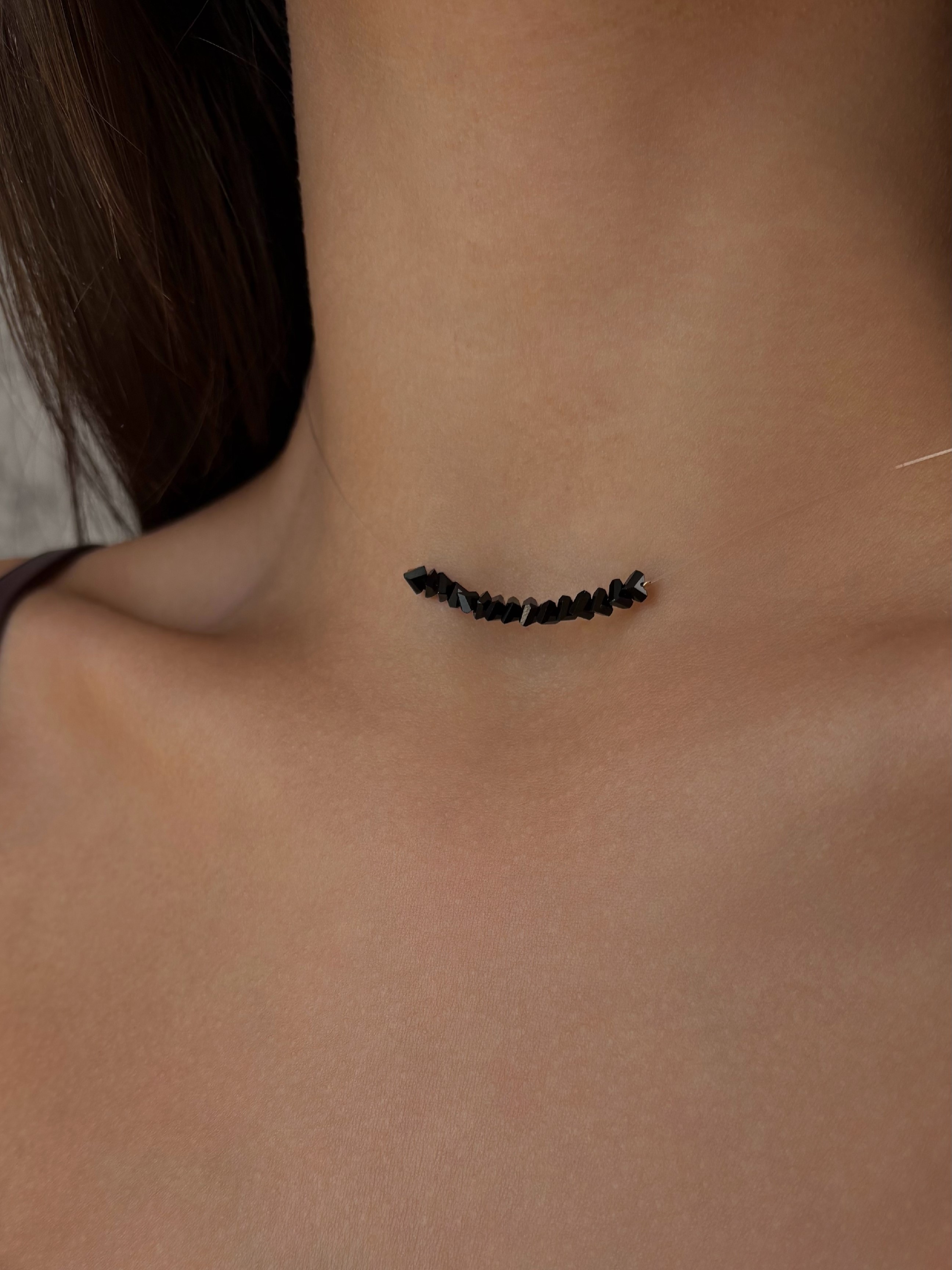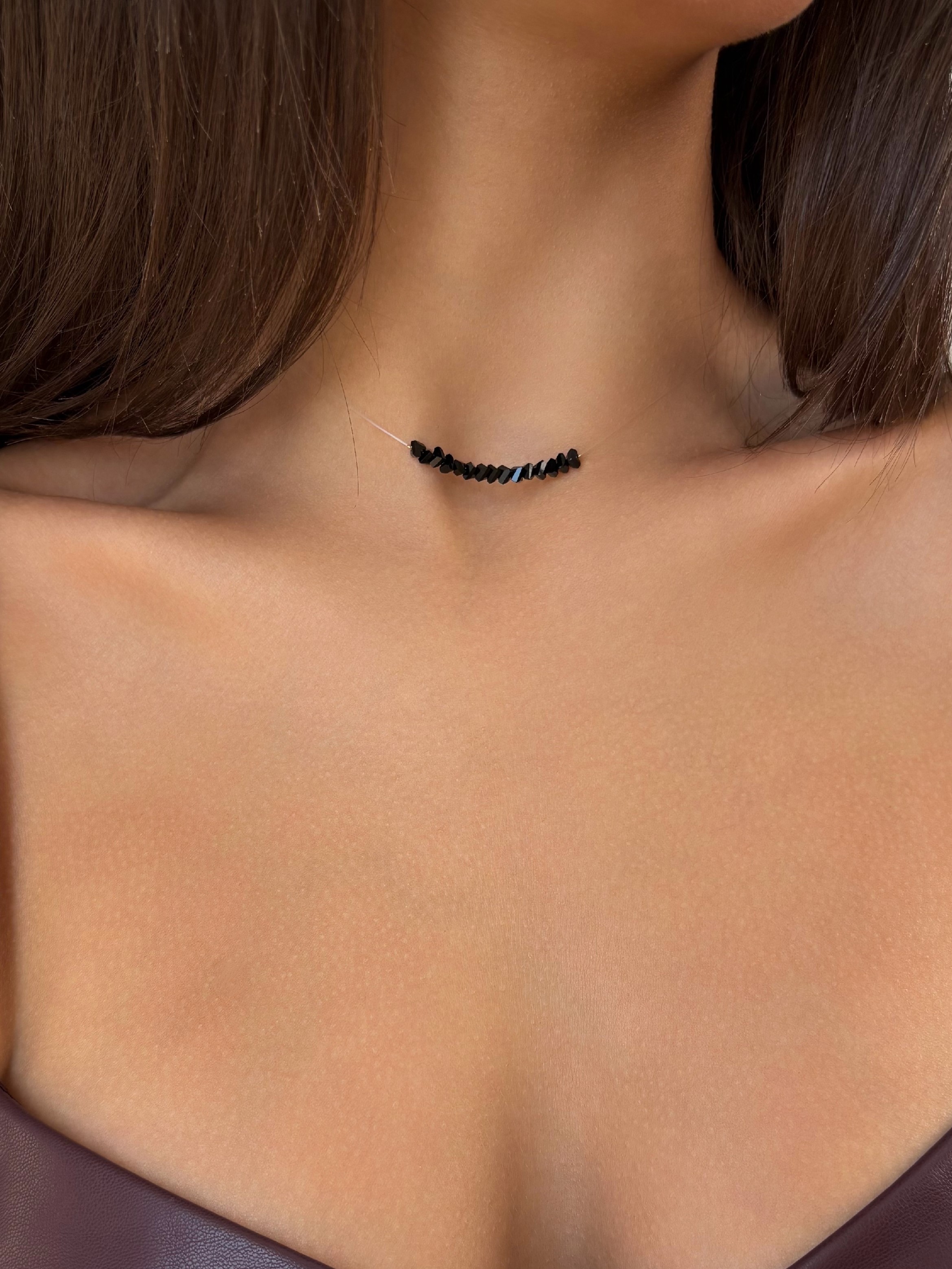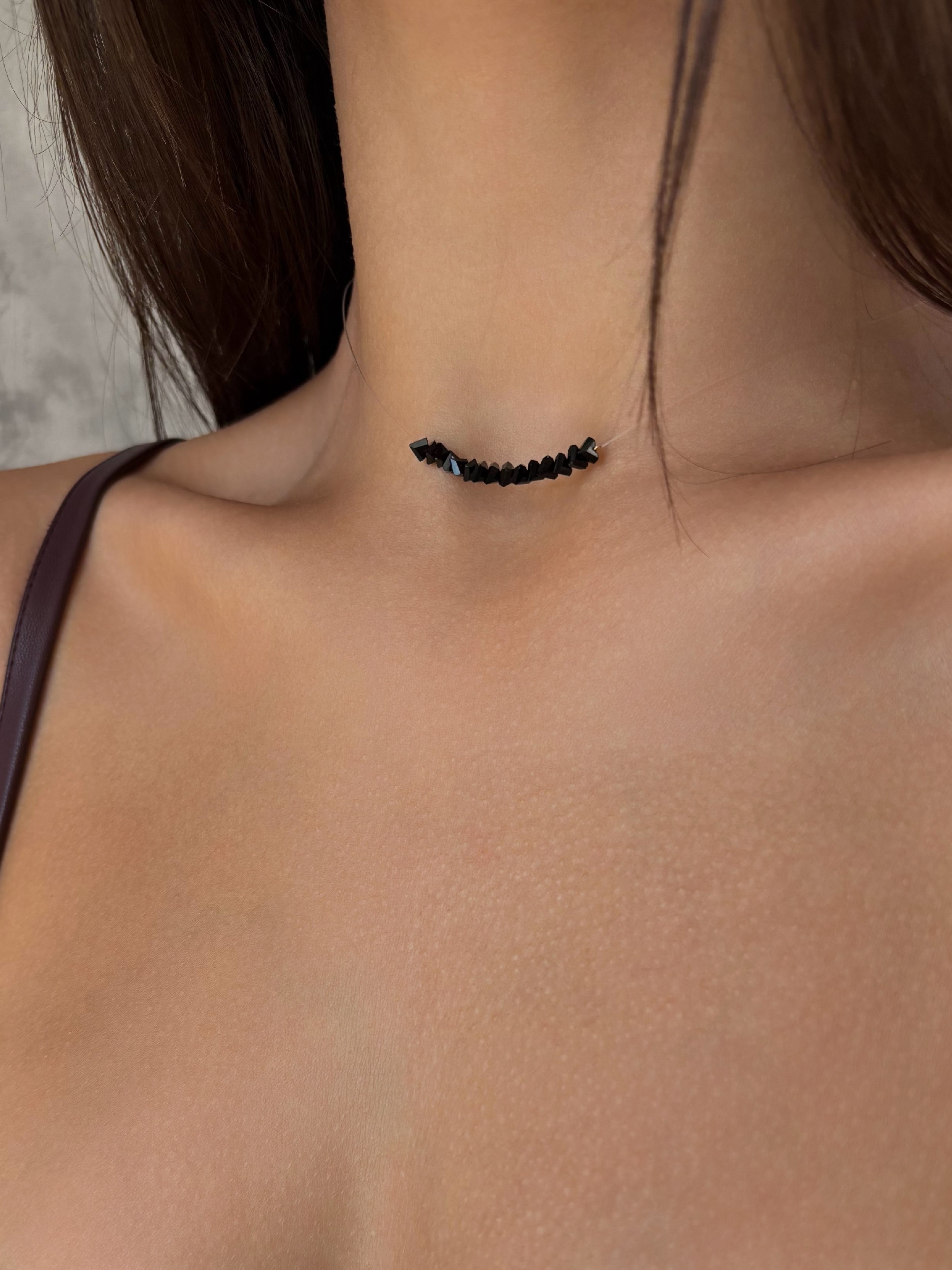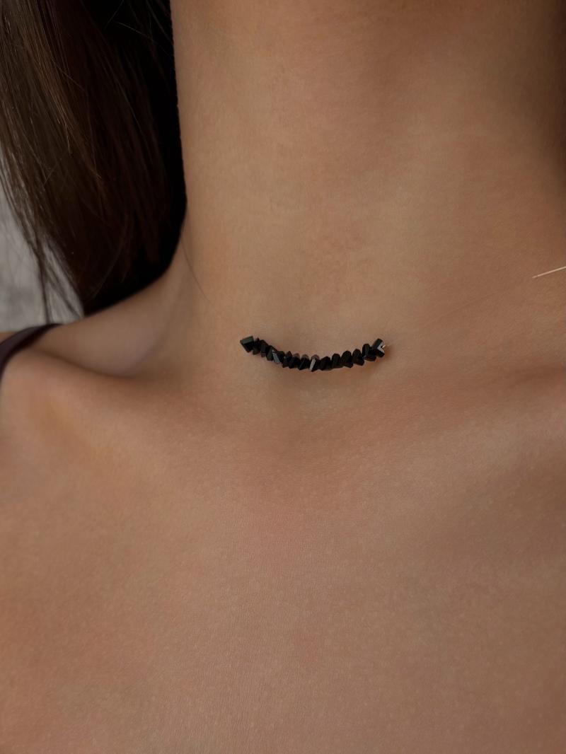 - Чокер з чорним кришталем на прозорій основі