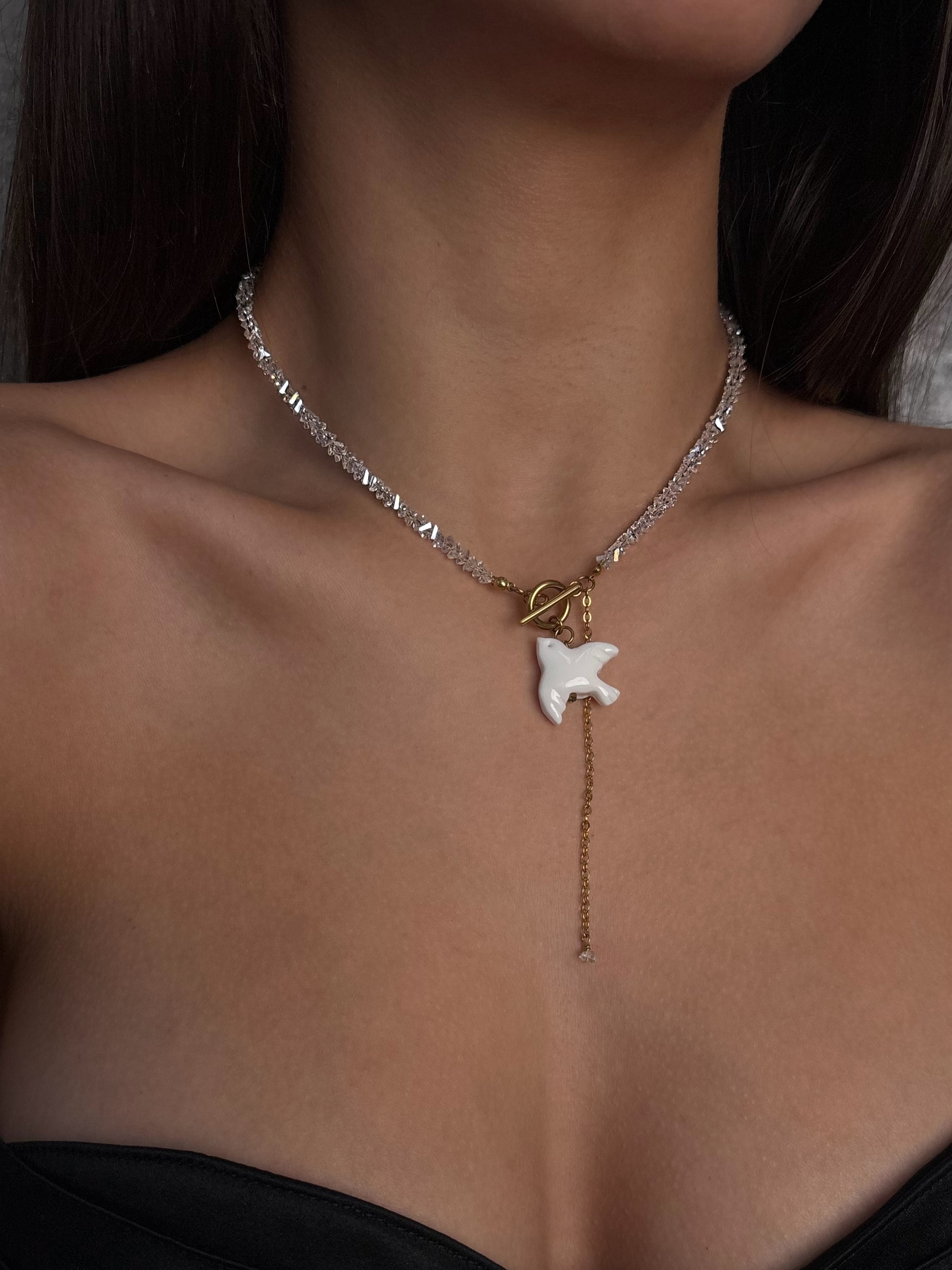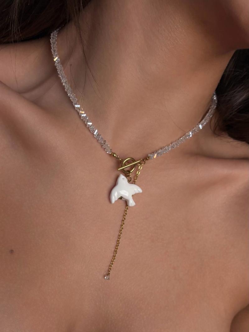 - Кольє з прозорого кришталю з пташкою