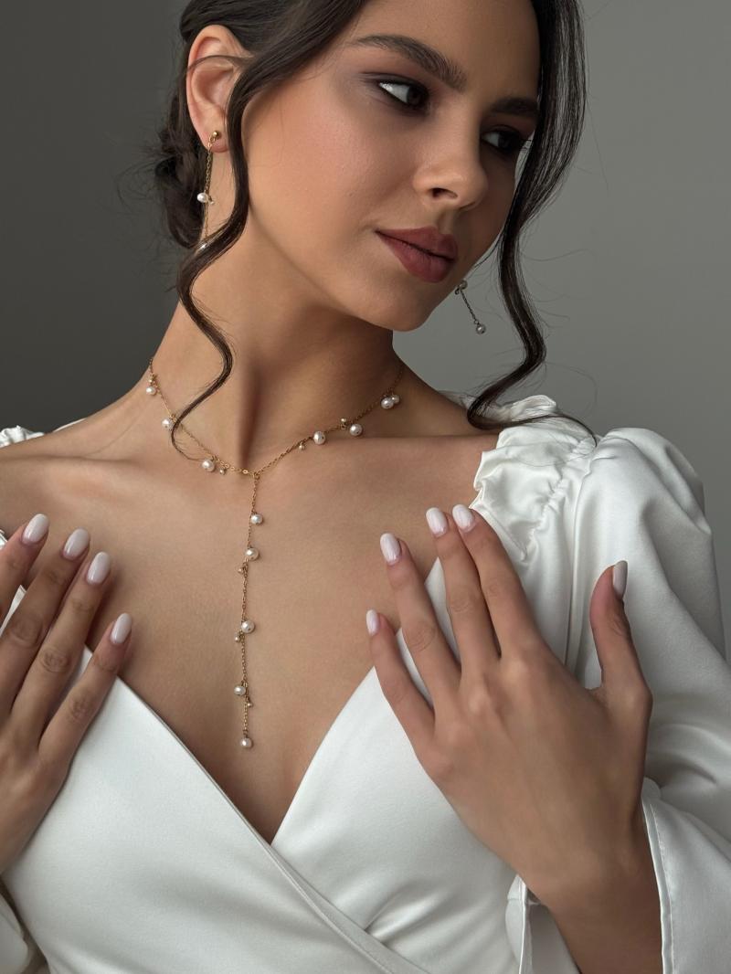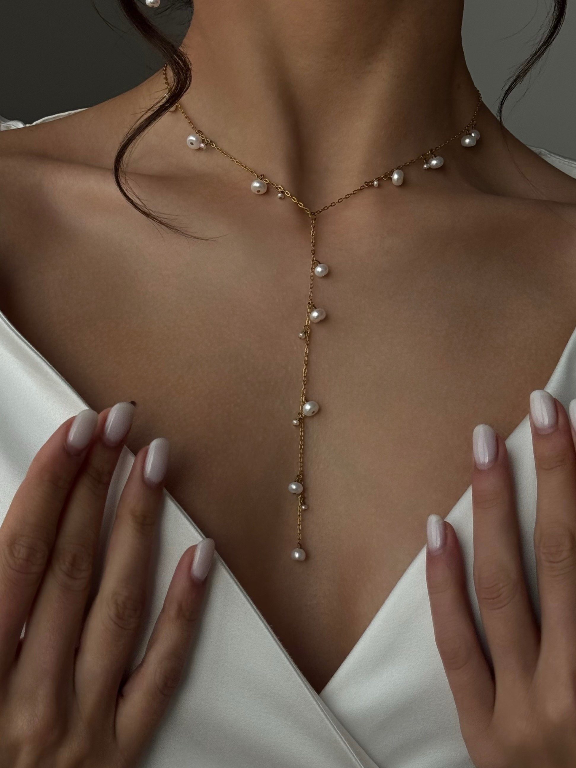- Витончений ланцюжок-краватка з натуральними перлинами
