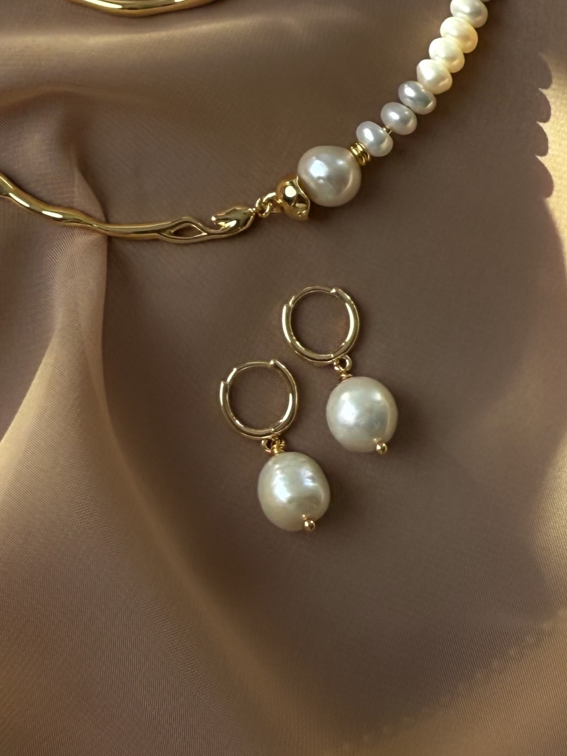 Витончені сережки з натуральними перлинами. Основа зручна та надійна. Матеріал латунь з покриттям позолоти 18 карат (у золотому кольорі).