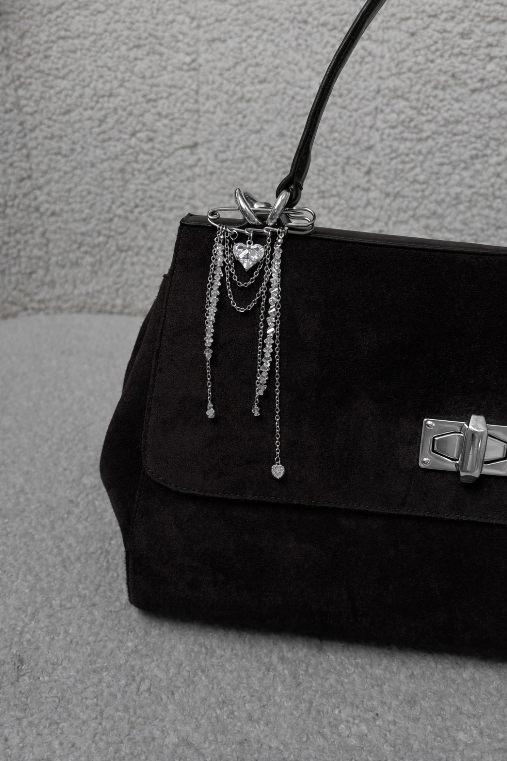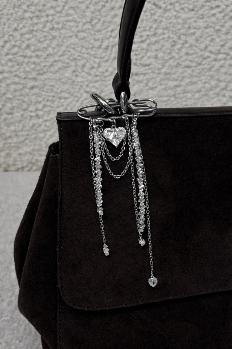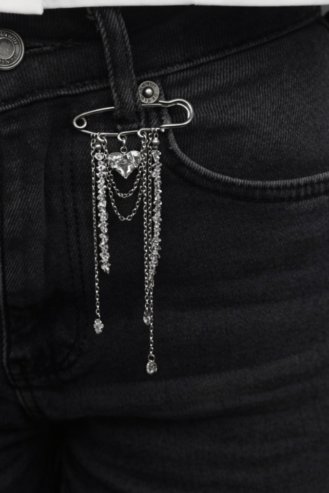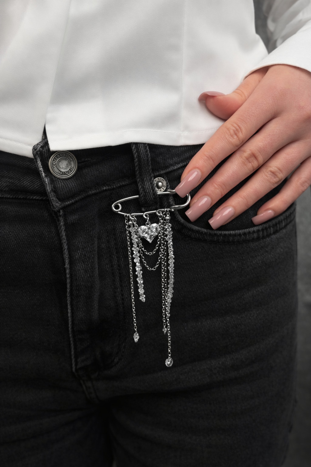 Стильна булавка з серцем та ланцюжками. Матеріал ювелірна сталь та латунь з покриттям родій (у срібному кольорі).