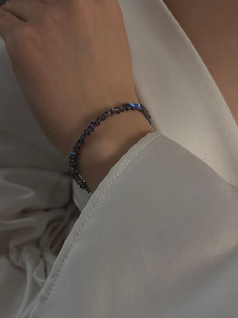 Браслет з прозорого кришталю з додаванням позолочених елементів. Матеріал фурнітури ювелірна нержавіюча сталь (у золотому кольорі).